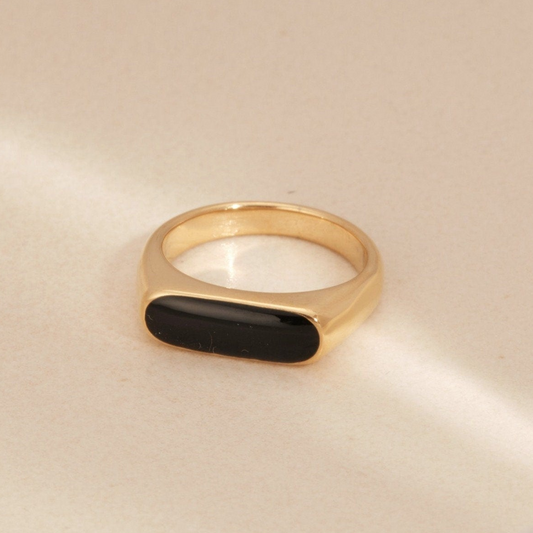 Gold rectangle Black Enamel Rings Geometric Ring Vintage Stainless Steel Jewelry Gold Ring Minimalist Ring Gold ring Non tarnish ring