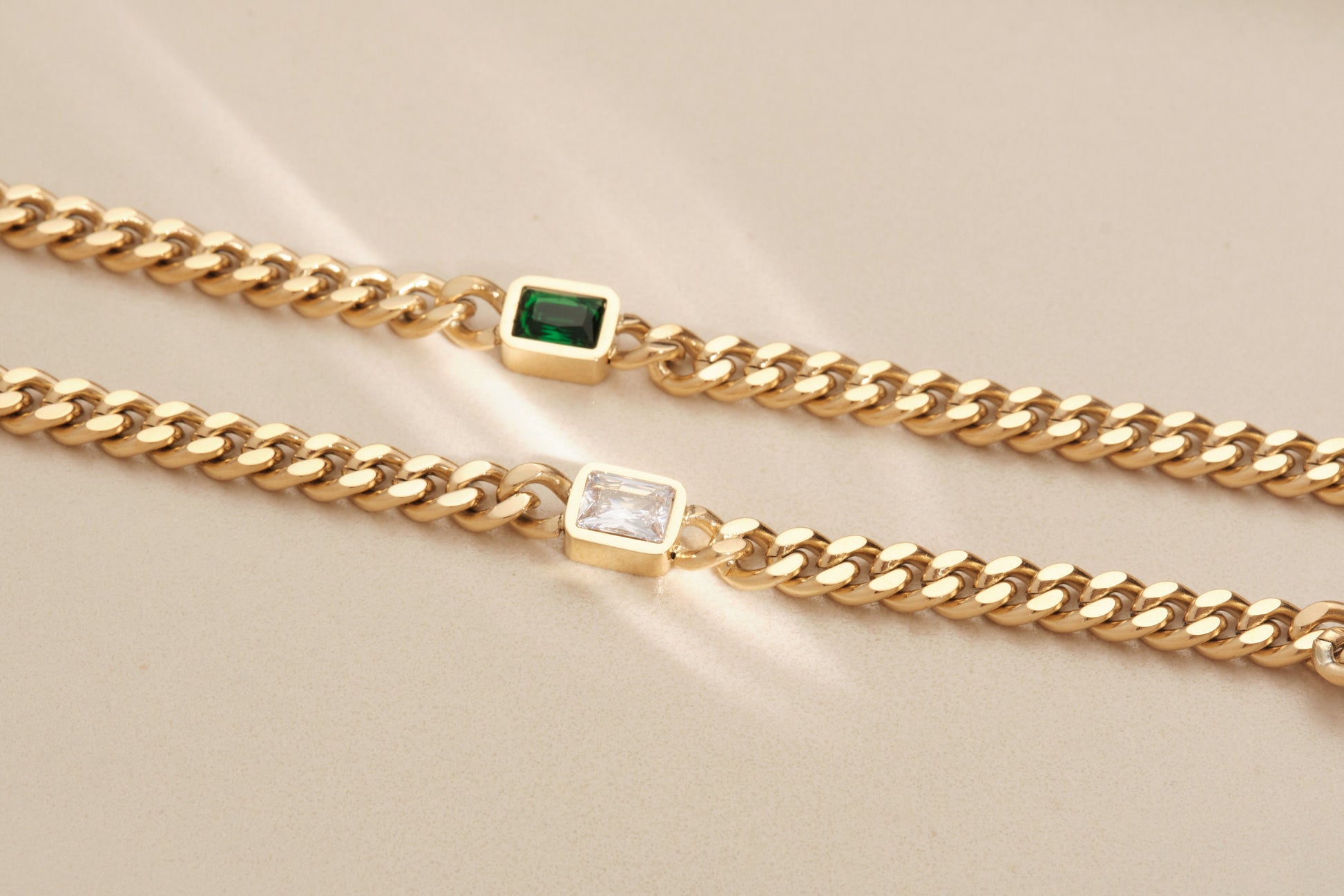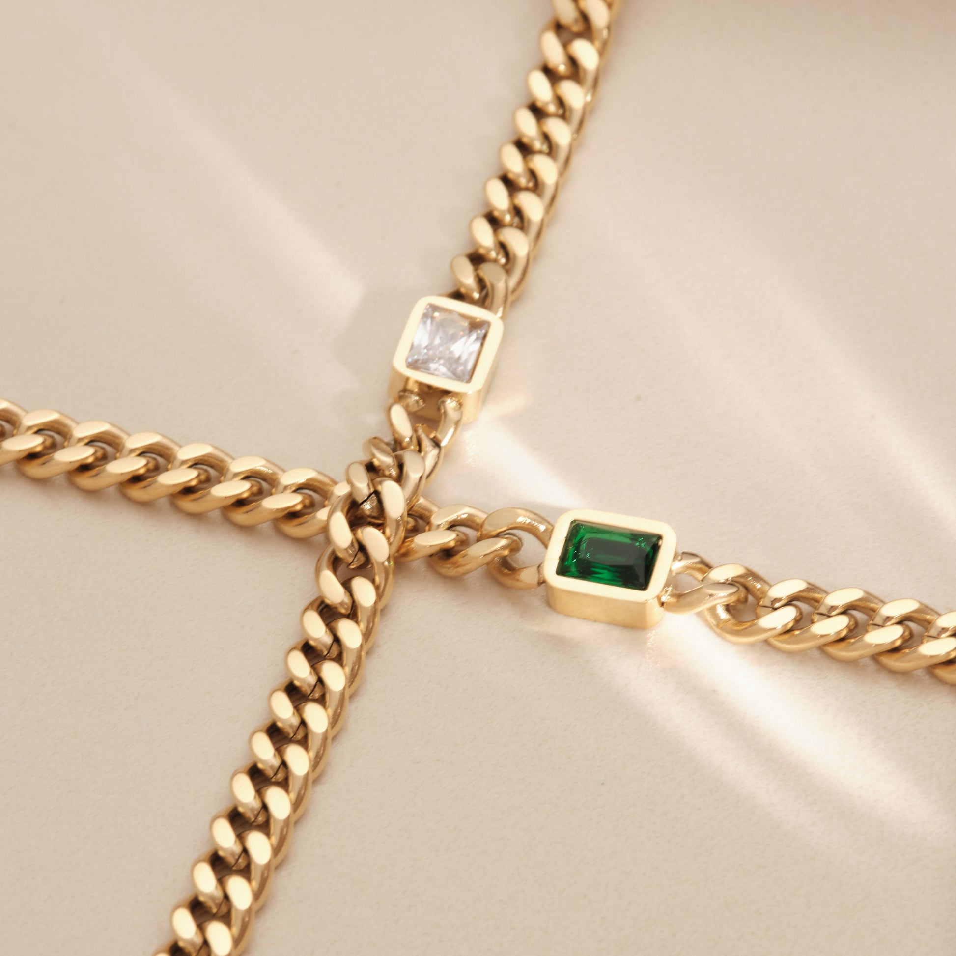 18K Gold Cuban Chain Bracelet, Emerald Bracelet, Square CZ Bracelet, Gold Chain Bracelet, WATERPROOF, White CZ Bracelet, Cuban Chain Gold