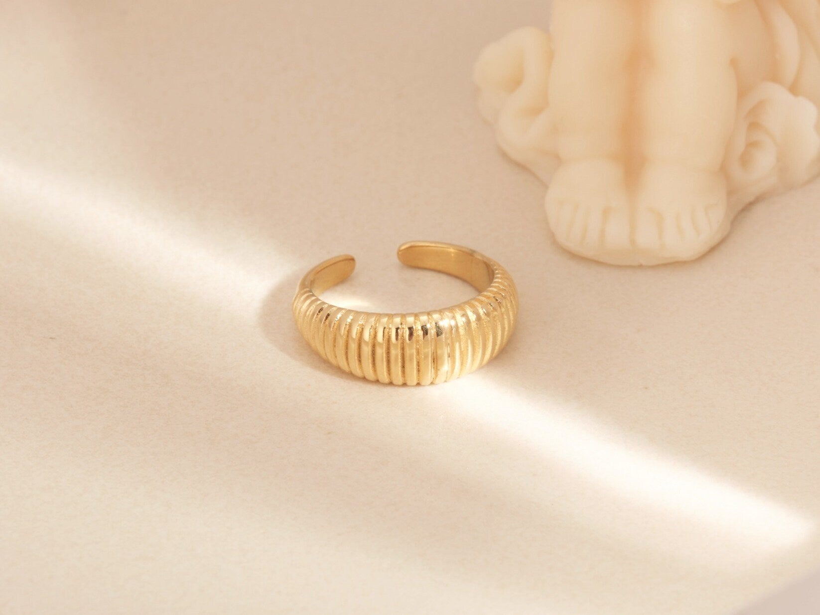 18K Gold Dome Ring Gold Ring Thick Ring Croissant Ring Twisted Ring Gold Thin Dome Ring Chic Ring Trendy Waterproof Stripes Ring WATERPROOF