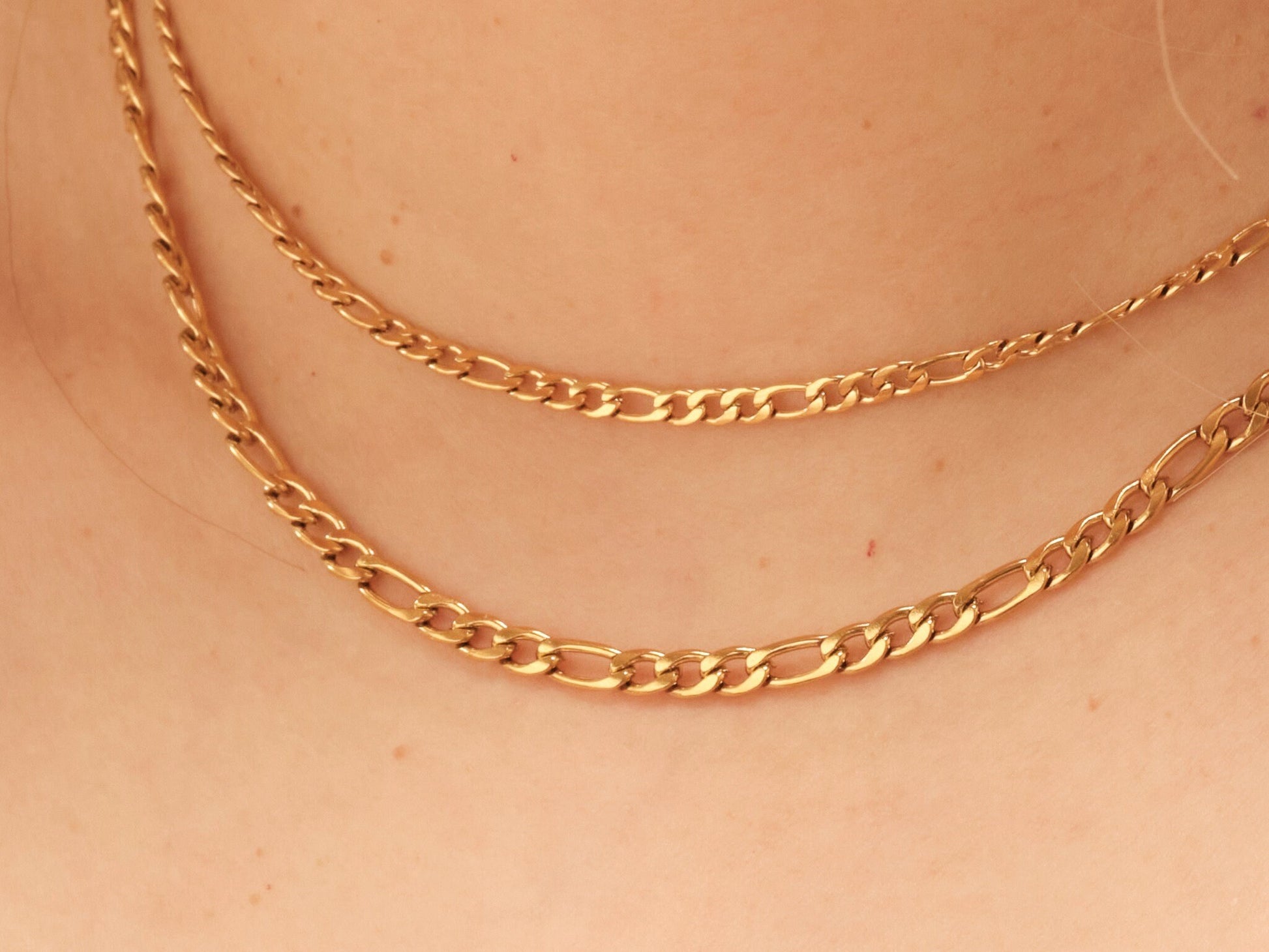 18K Gold Double Figaro Chain Necklace, Gold Figaro Necklace, Gold Necklace, Double Figaro Chain, Layered Necklace, WATERPROOF