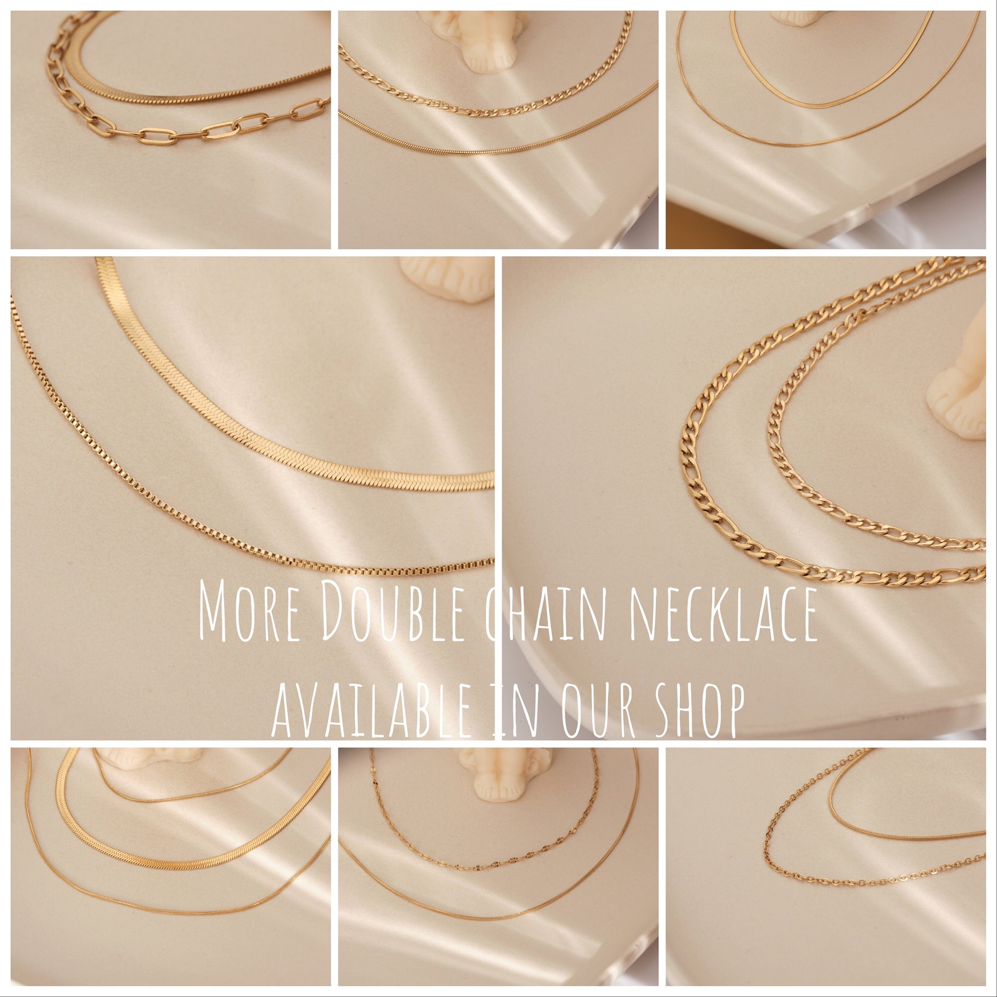 18K Gold Double Herringbone Necklace, Double Chains Necklace, Gold Snake Chain Box Chain Layering Necklace, gift for mom, Mother's Day Gift