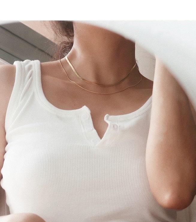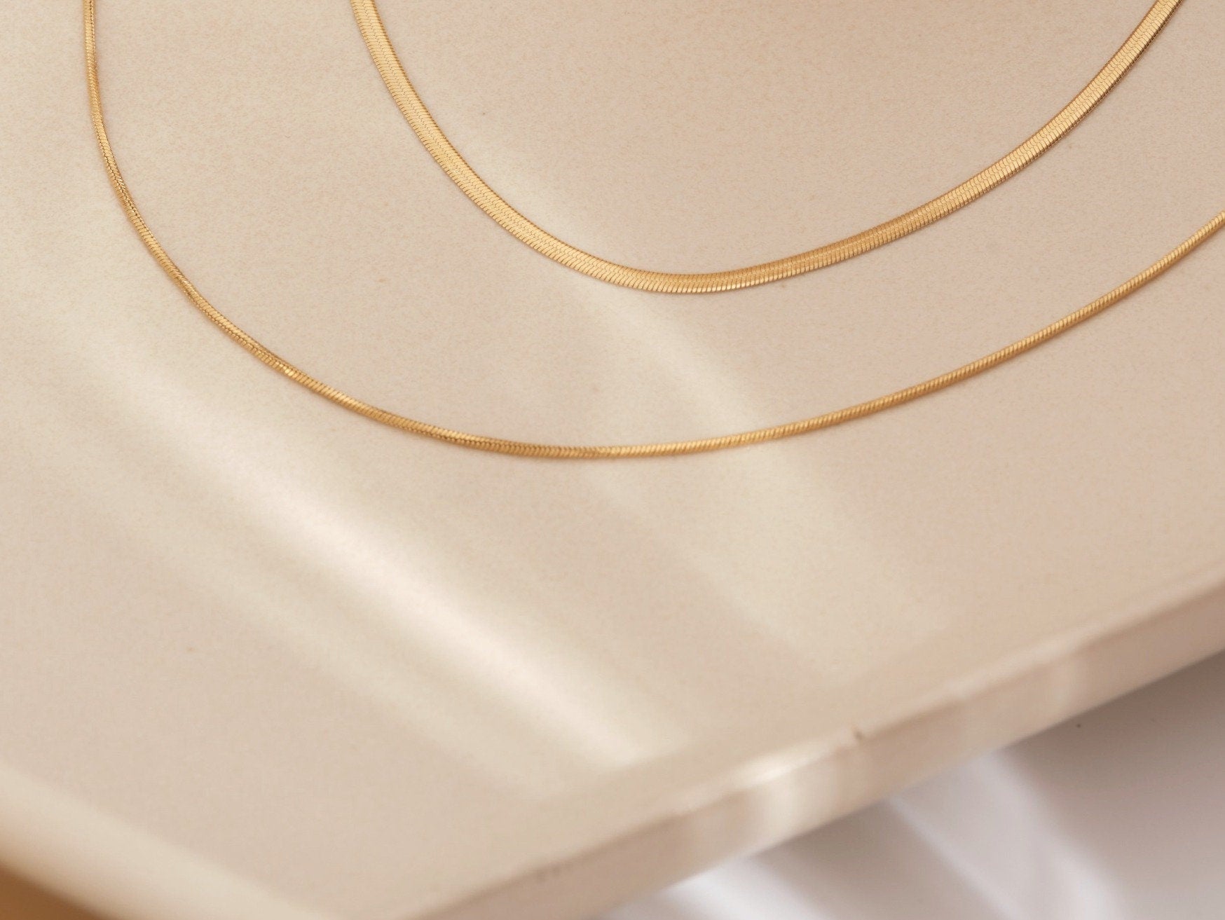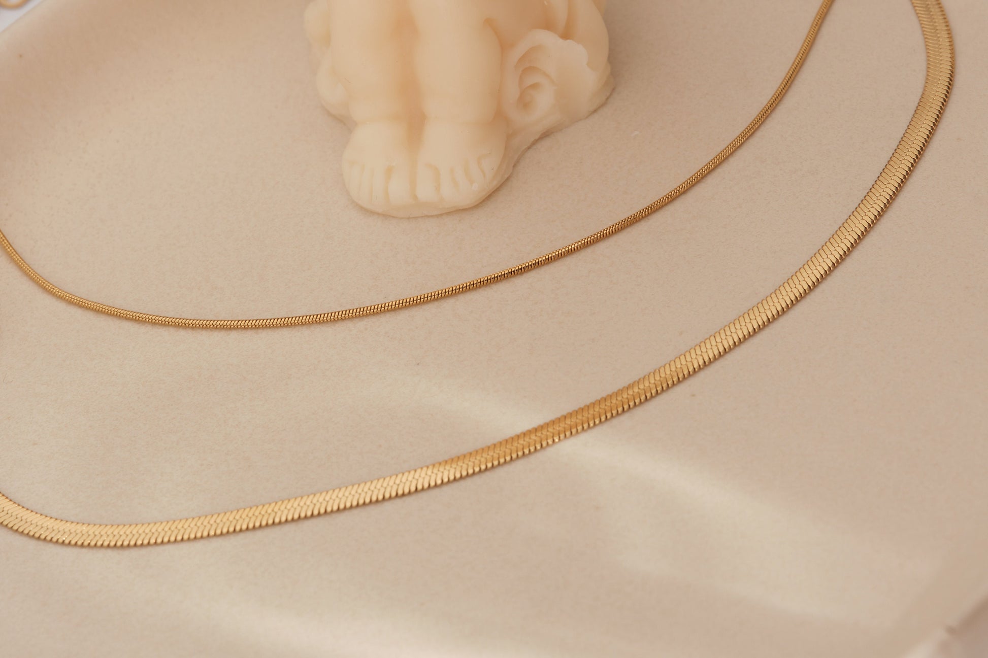 18K Gold Double Layer Snake chain necklace, Double Herringbone Chain Necklace, Minimalist Jewelry, Double strand Stacking Necklaces