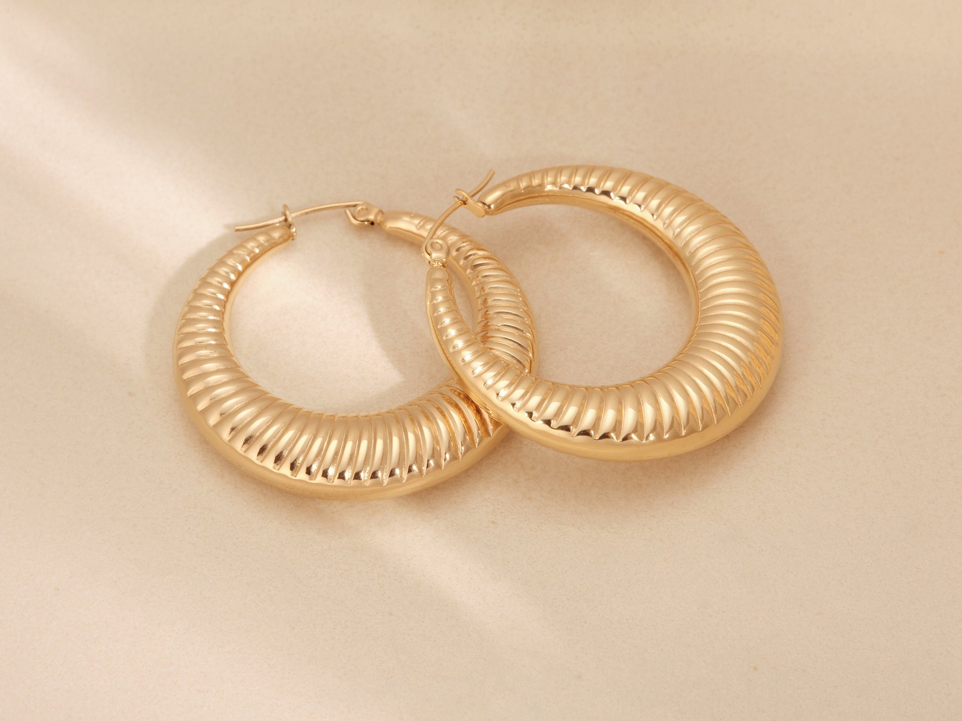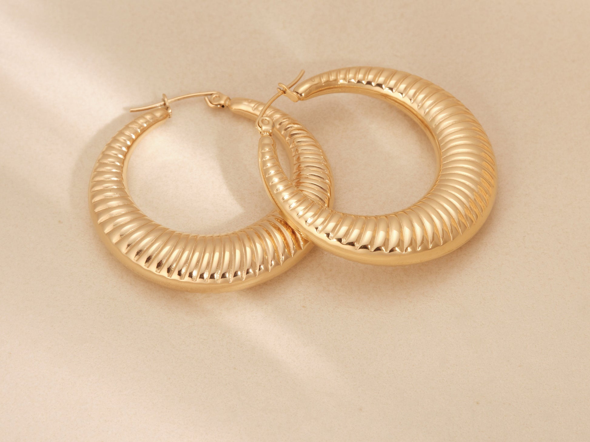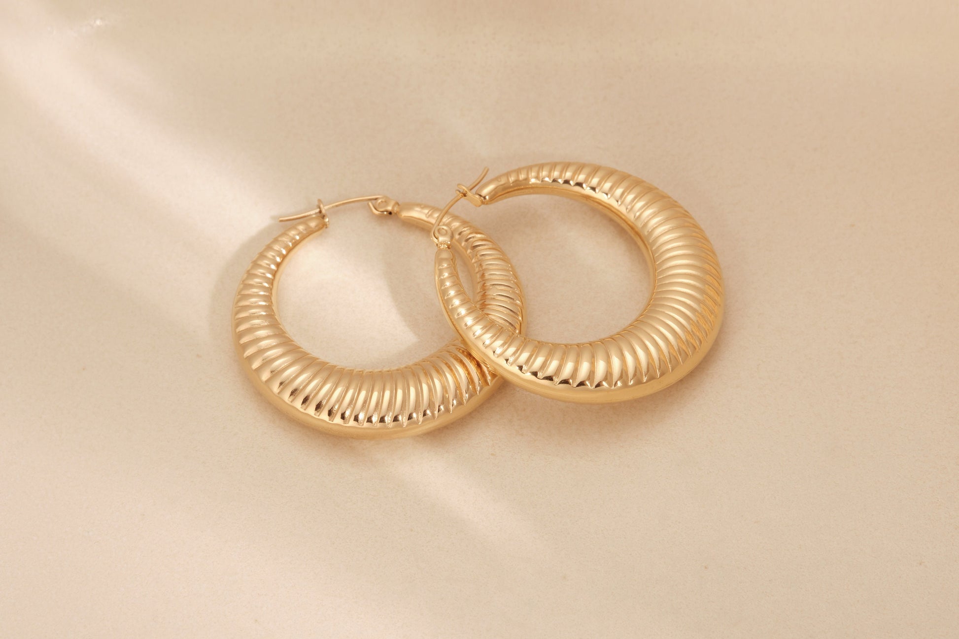 18K Gold Flat Croissant Earrings, Gold Croissant Earrings, Gold Croissant Hoops, Chunky Earrings, Statement Earrings, Thick Hoop Earrings