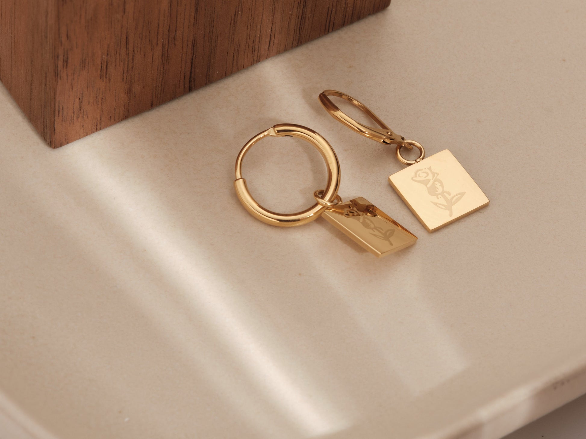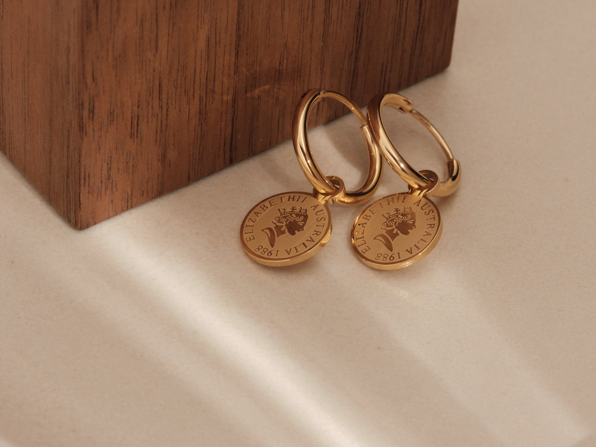 18K GOLD French Retro Earrings Square Rose Flower Dangle Hoop earring Elizabeth Earrings Queen head Charm earrings WATERPROOF Earrings