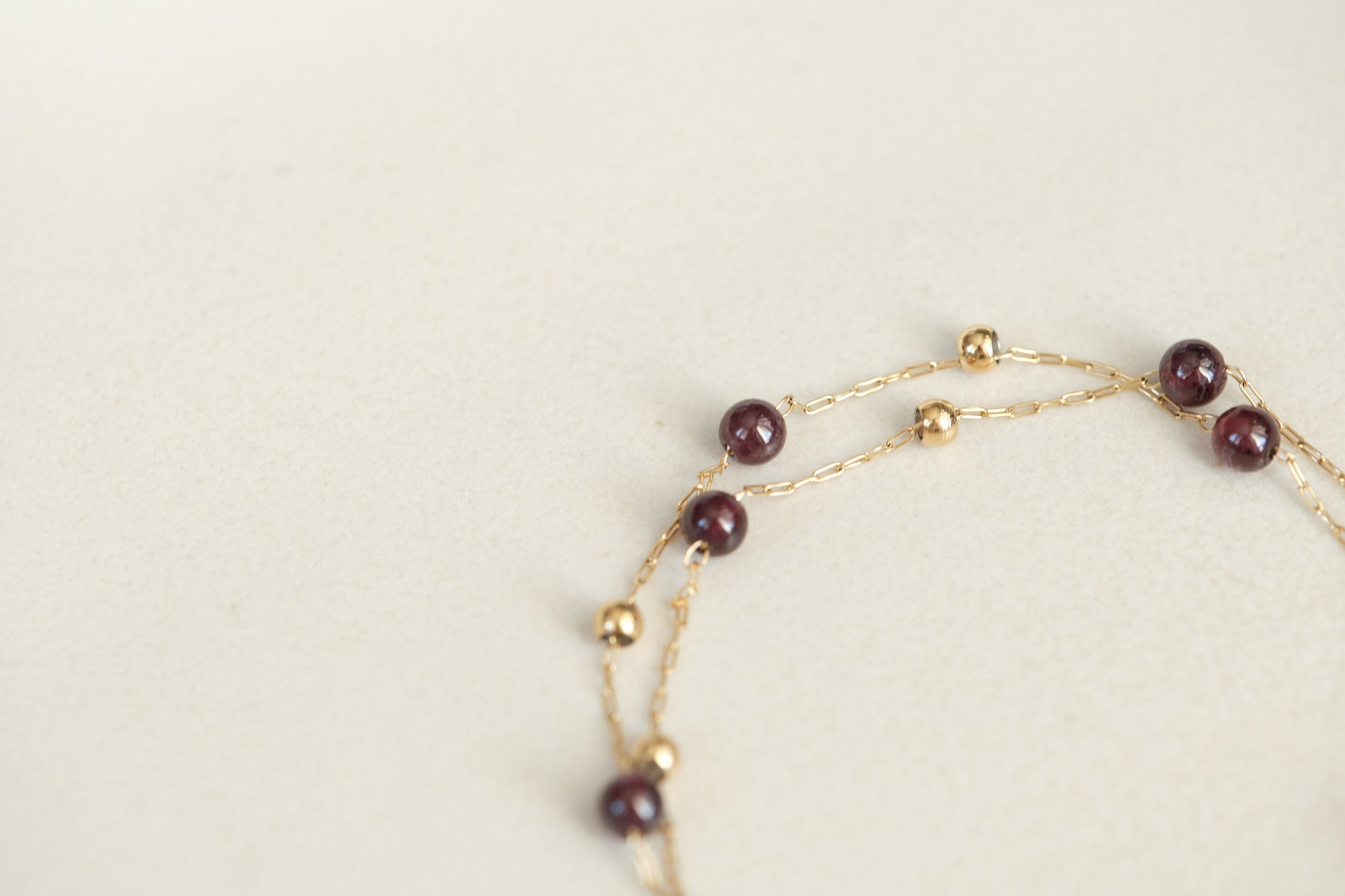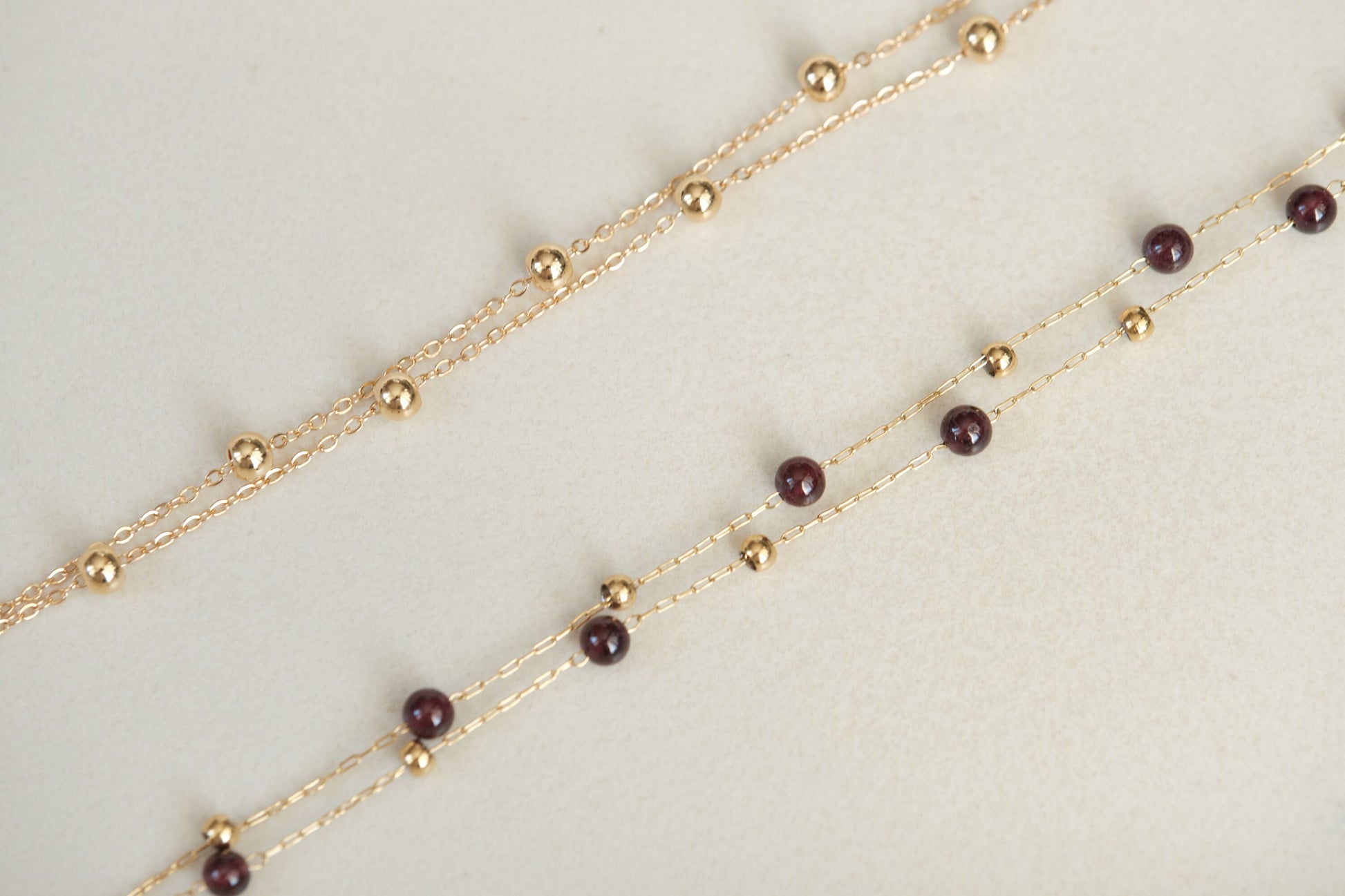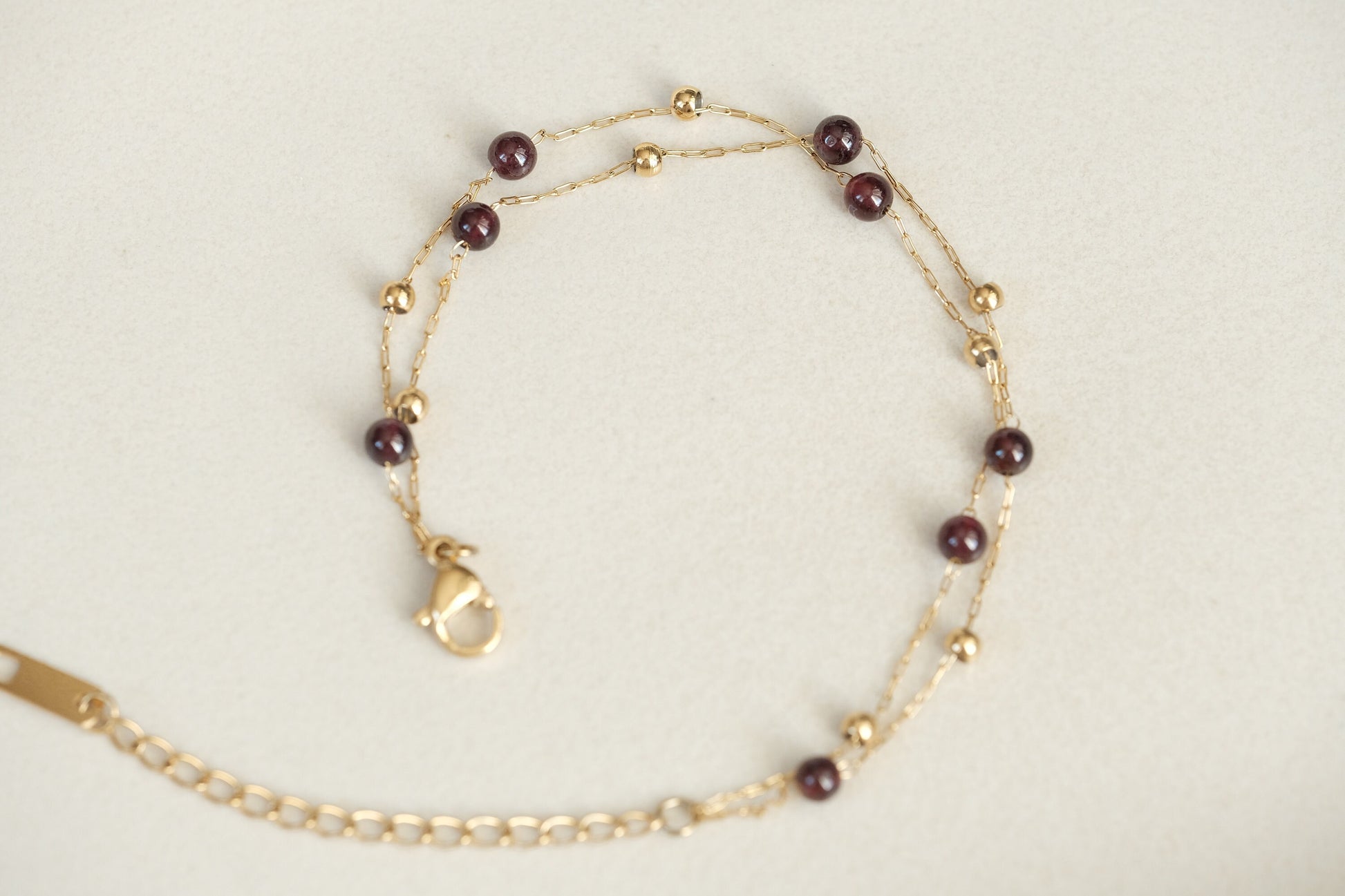 18k gold Garnet beads bracelet, double chain bracelet, double layer bracelet, garnet bracelet, birthstone garnet jewelry, gold bracelet
