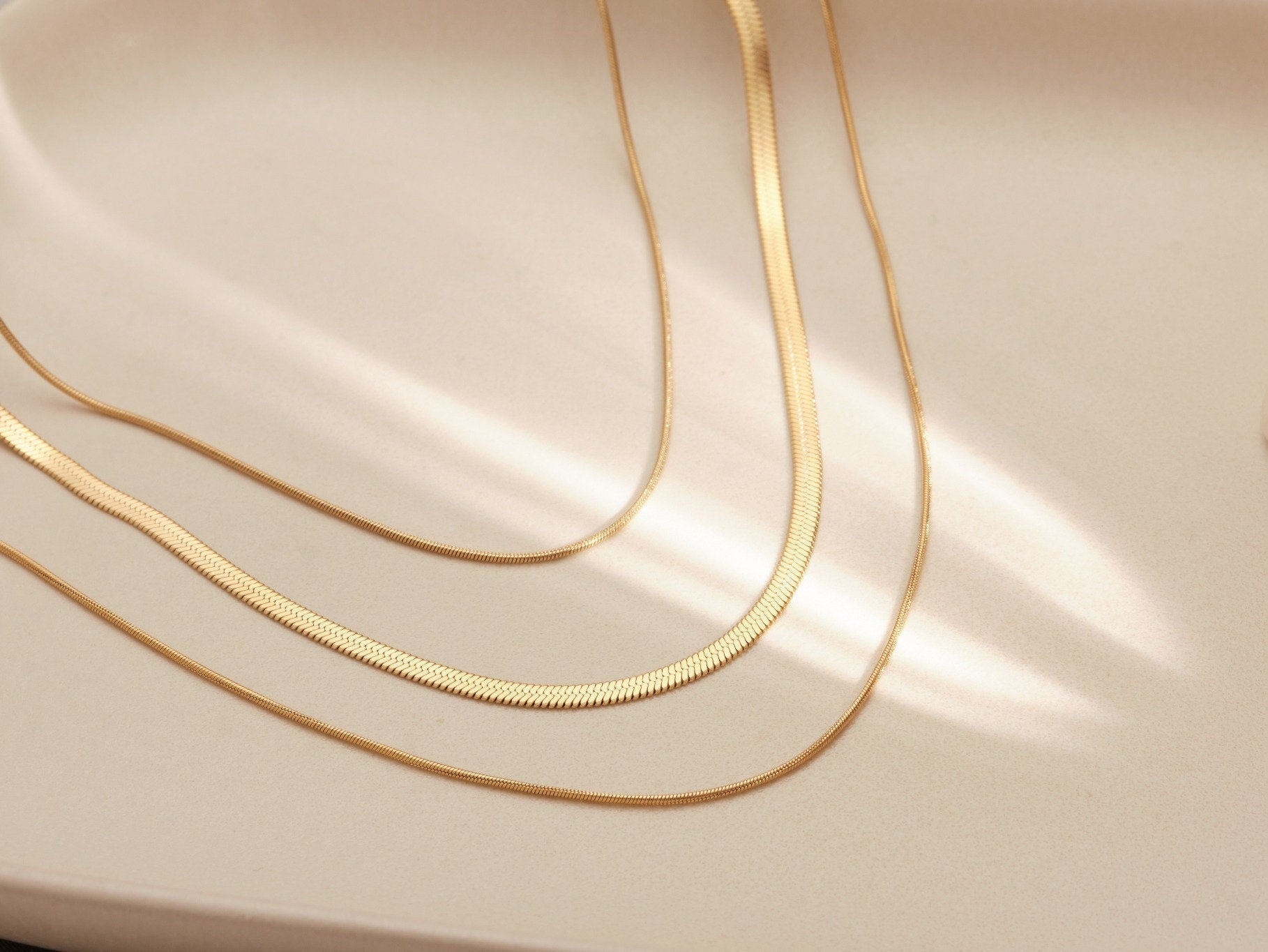 18K Gold Herringbone Necklace, 3 in 1 necklace, Gold Snake Chain Three Layer Necklace, WATERPROOF, Herringbone Chains Necklace
