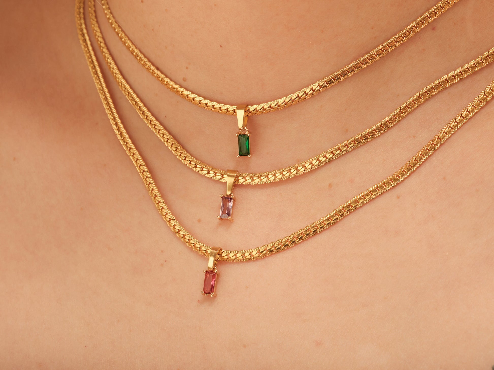 18k Gold Herringbone Necklace, Gold Herrringbone Necklace, Gold Snake Chain Choker, Flat Herringbone Choker Zircon Choker, CZ Snake