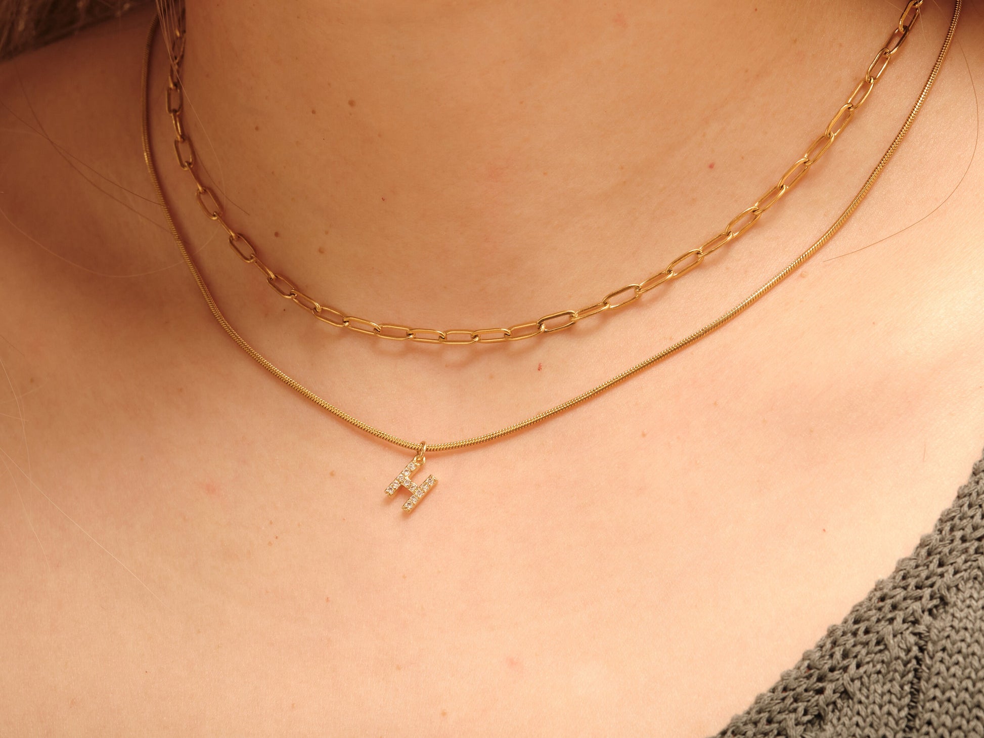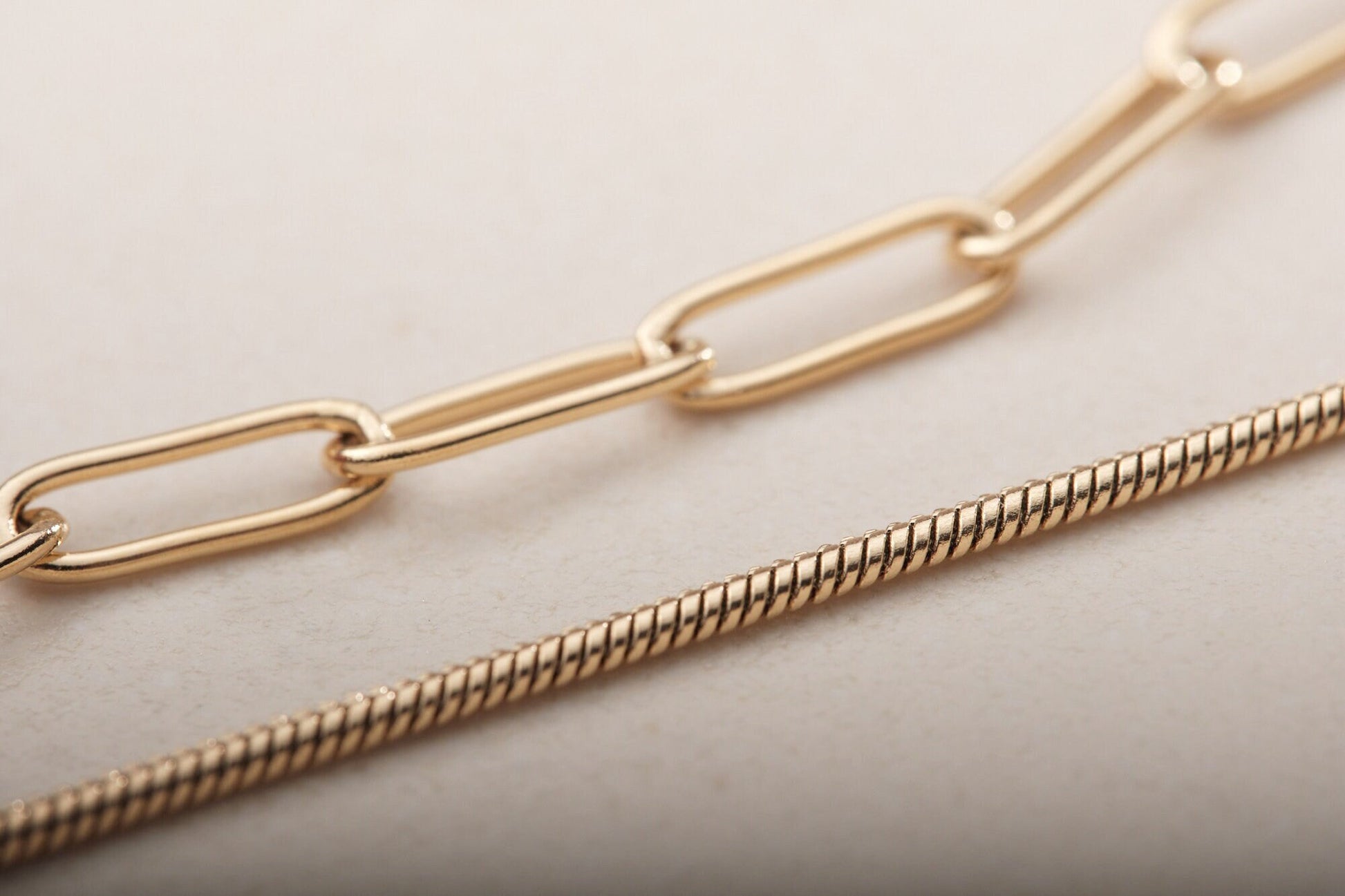 18K Gold Herringbone Necklace Set Gold Double Layered Snake Chain Set Herringbone Layering Necklace Layering Gold Chain Set Paperclip Chain