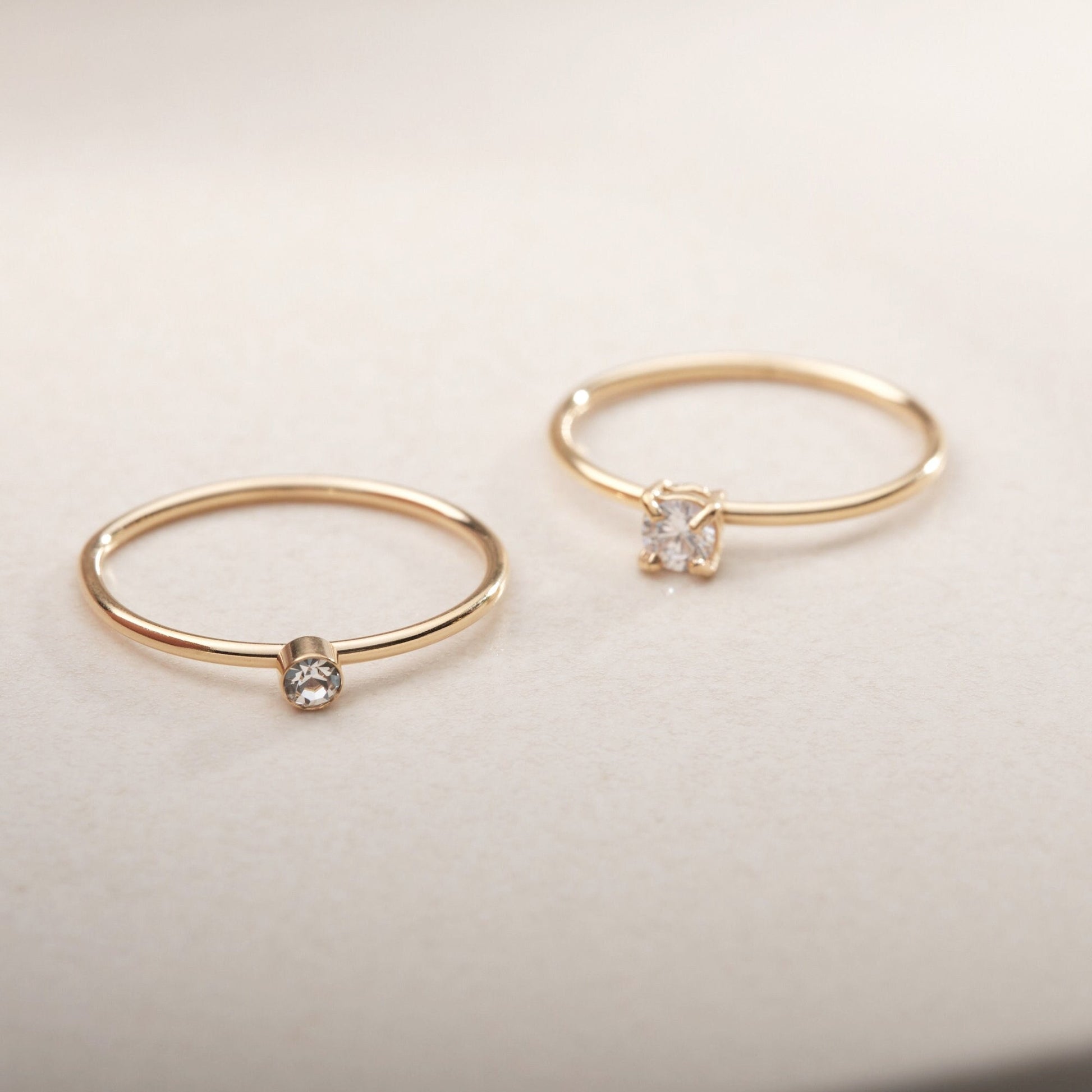 18K Gold Minimalist ring, Thin Gold Square Zirconia ring, Gold CZ ring, Hypoallergenic, Water-resistant, Gift for her, CZ Gold ring