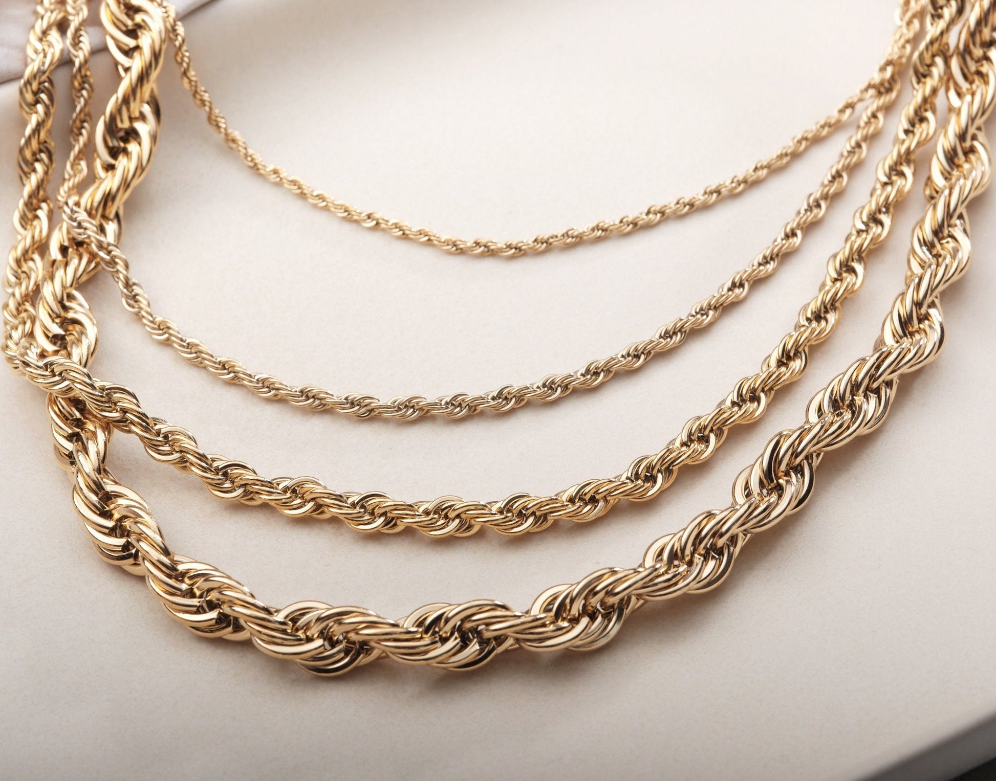 18k Gold Plated Twisted Rope Chain Necklace Gold Chunky Twisted rope choker Gold twisted Rope chain Bracelet Gold rope Chain bracelet