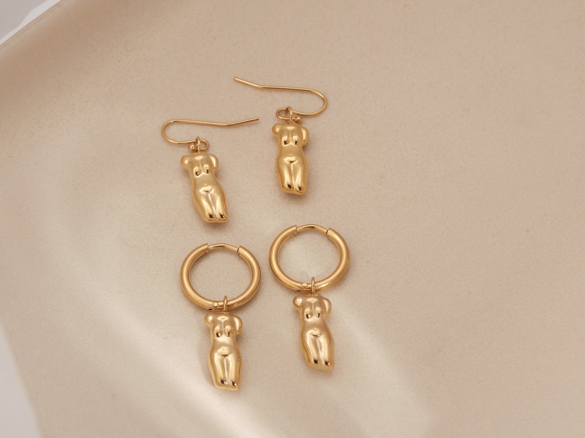 18k Gold pvd Female Bust Earrings God Body Earrings Minimalist Naked Body Hoops Nude Woman Figure Huggies Body Sculpture Gold Earrings