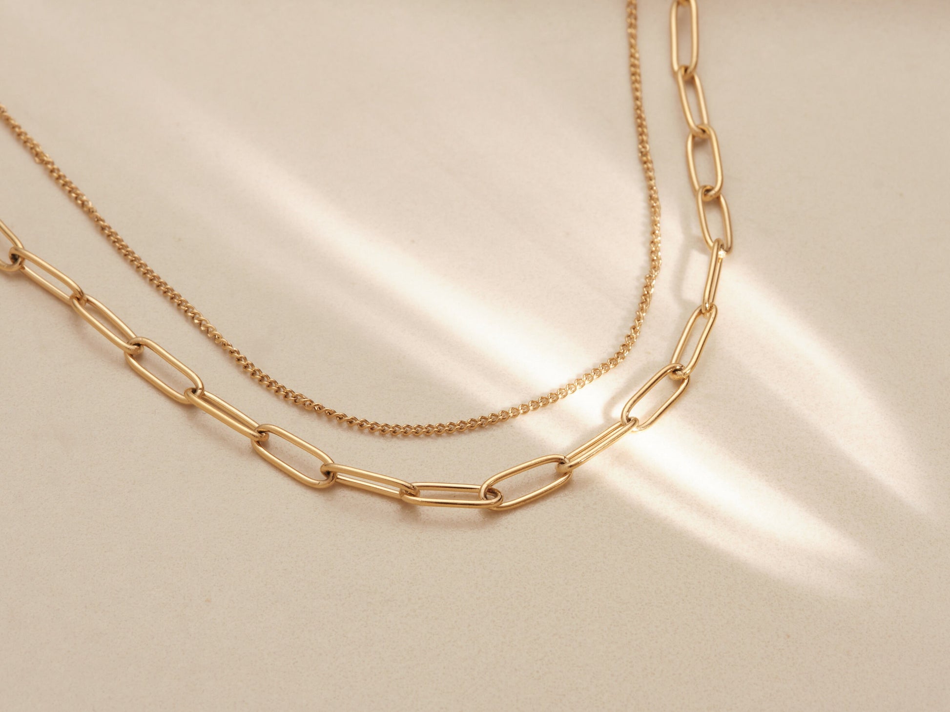 - Chain width: Paperclip chain & cable chain with toggle clasp.