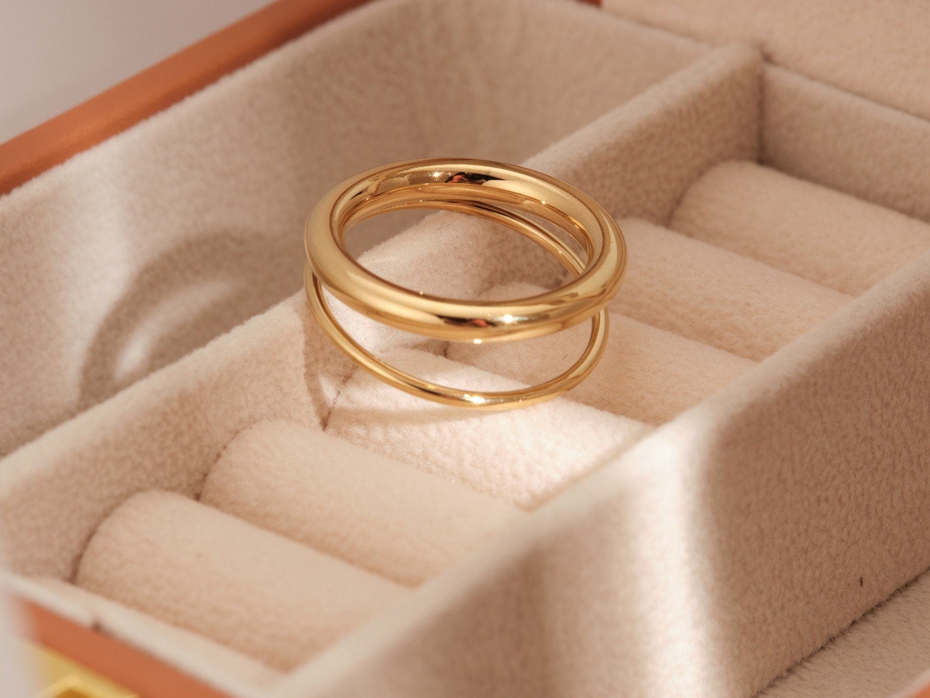 18K Gold Stackable Ring, Band Ring, Water and Tarnish Resistant Ring, Stainless Titanium Ring Double Band ring, Gold band ring, Dainty ring