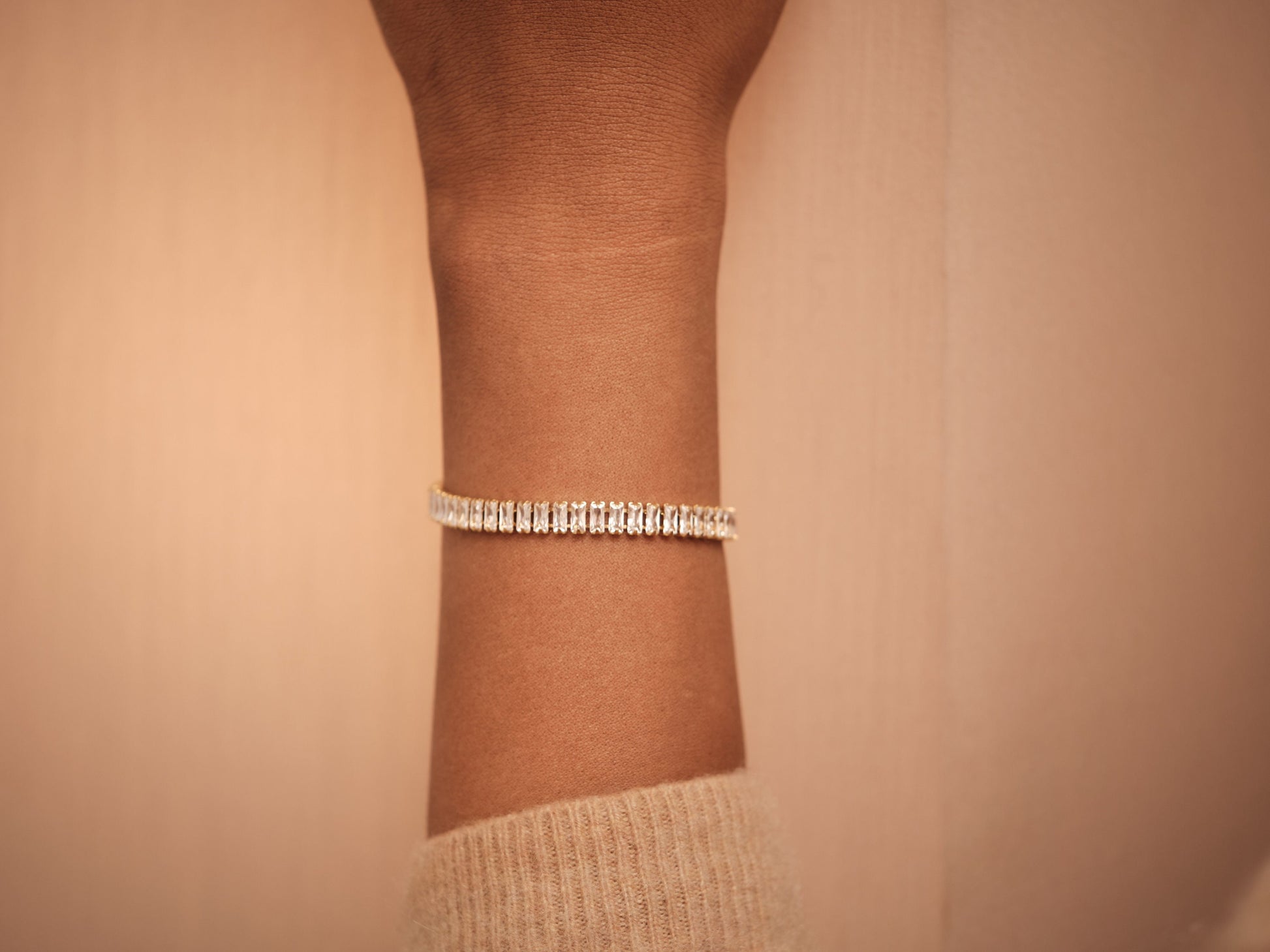 18k Gold Tennis cz Bracelet, Baguette cz Bracelet, Tennis CZ Chain, Pave CZ Bracelet for Women Waterproof Jewelry Tennis Diamond CZ Bracelet
