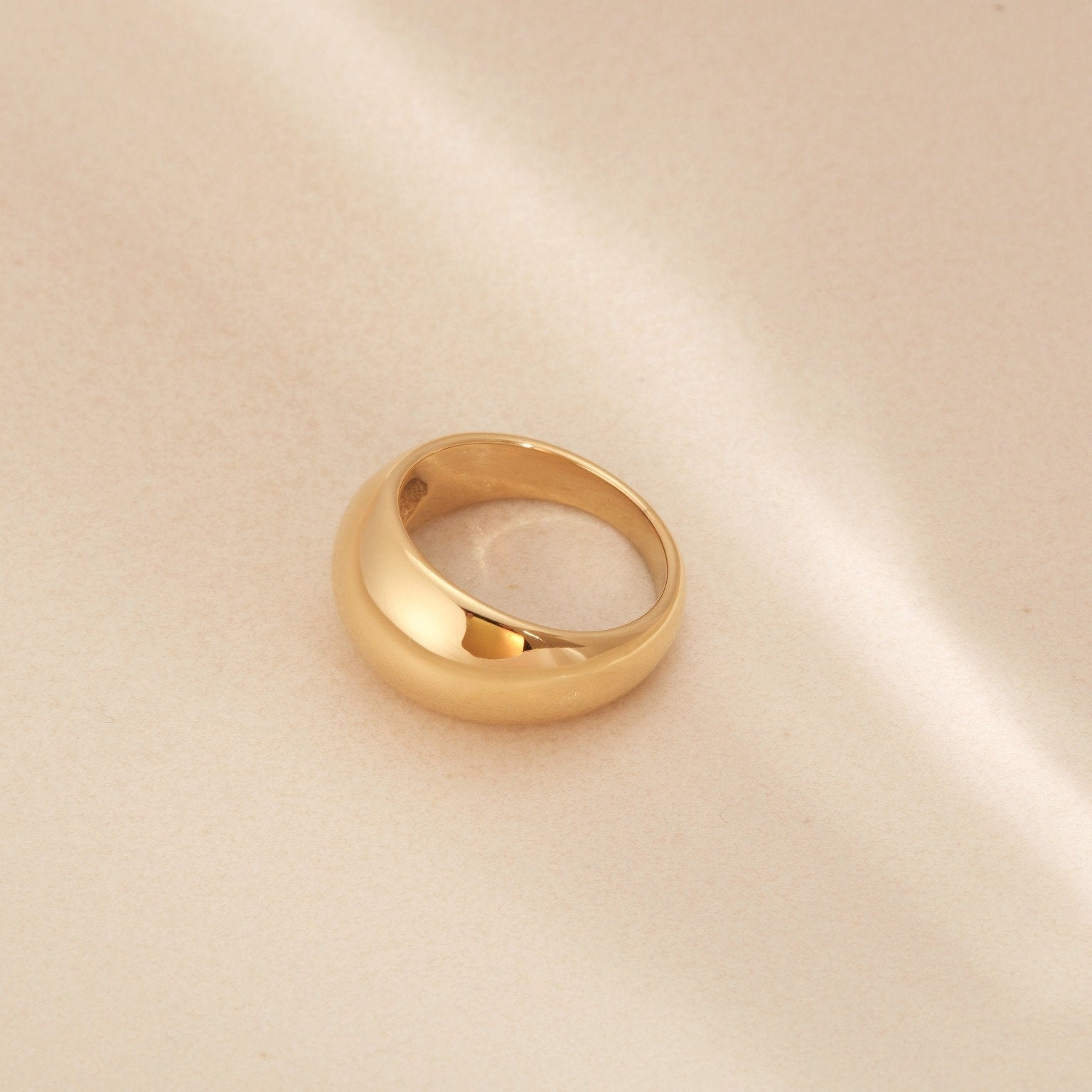18K Gold Twisted Dome Ring Croissant Ring Chunky Ring Gold Braid Rope Ring Classic Dome Ring for Women Croissant Dome Twist Rope WATERPROOF
