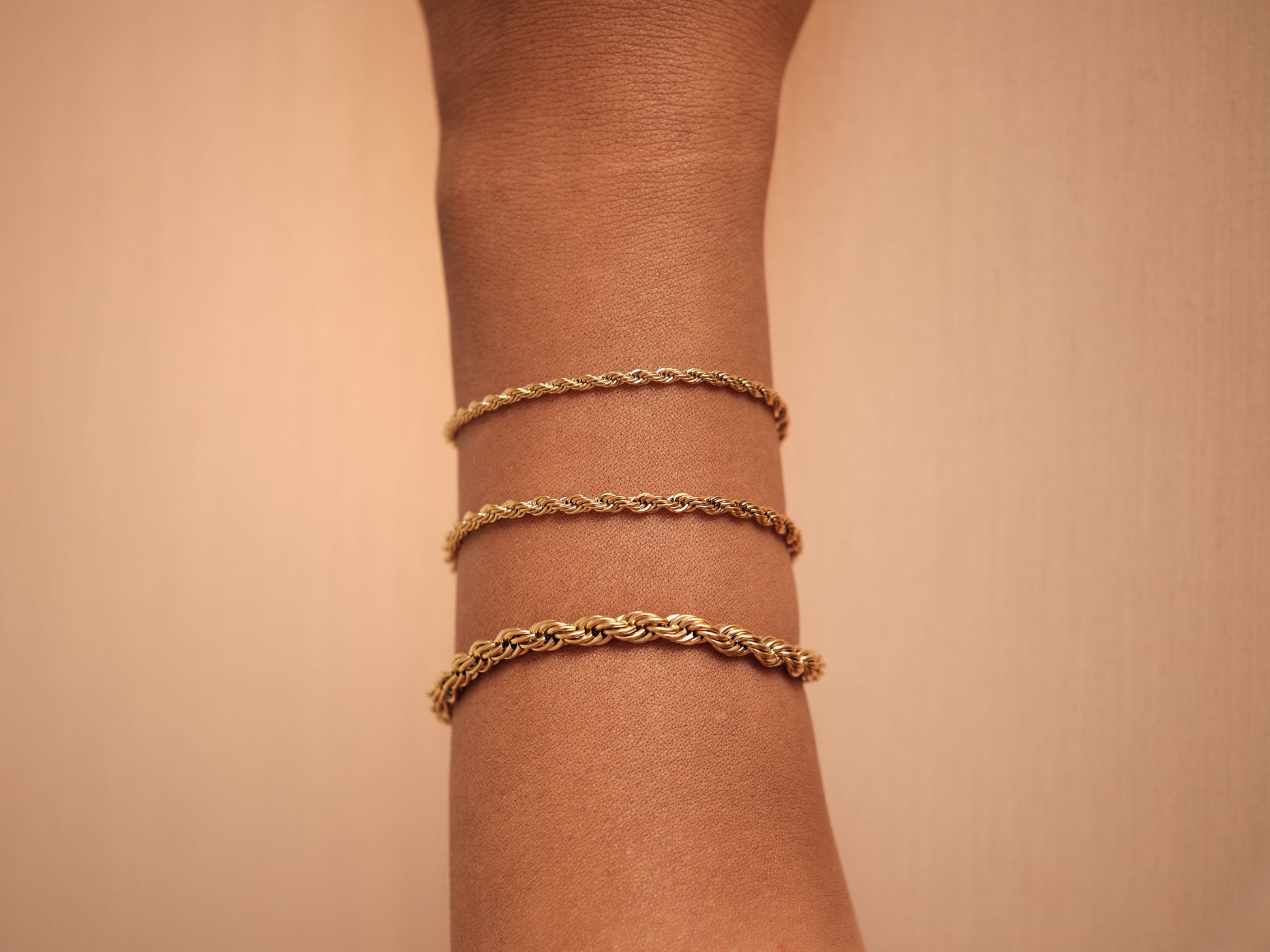 18k Gold Twisted Rope Chain Bracelet Gold Chunky Twisted Bracelet Gold rope Chain bracelet Rope chain 2mm 3mm 5mm twisted chain bracelet
