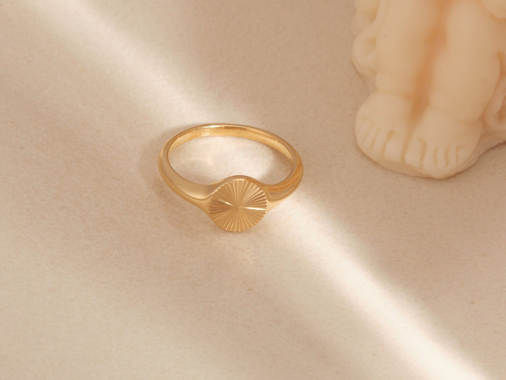 18K Sunbeam Ring 18K Gold Plated Signet Ring Delicate Ring Tiny Ring Stripe Ring Sunshine Ring Statement Ring Vintage Ring Minimalist Ring