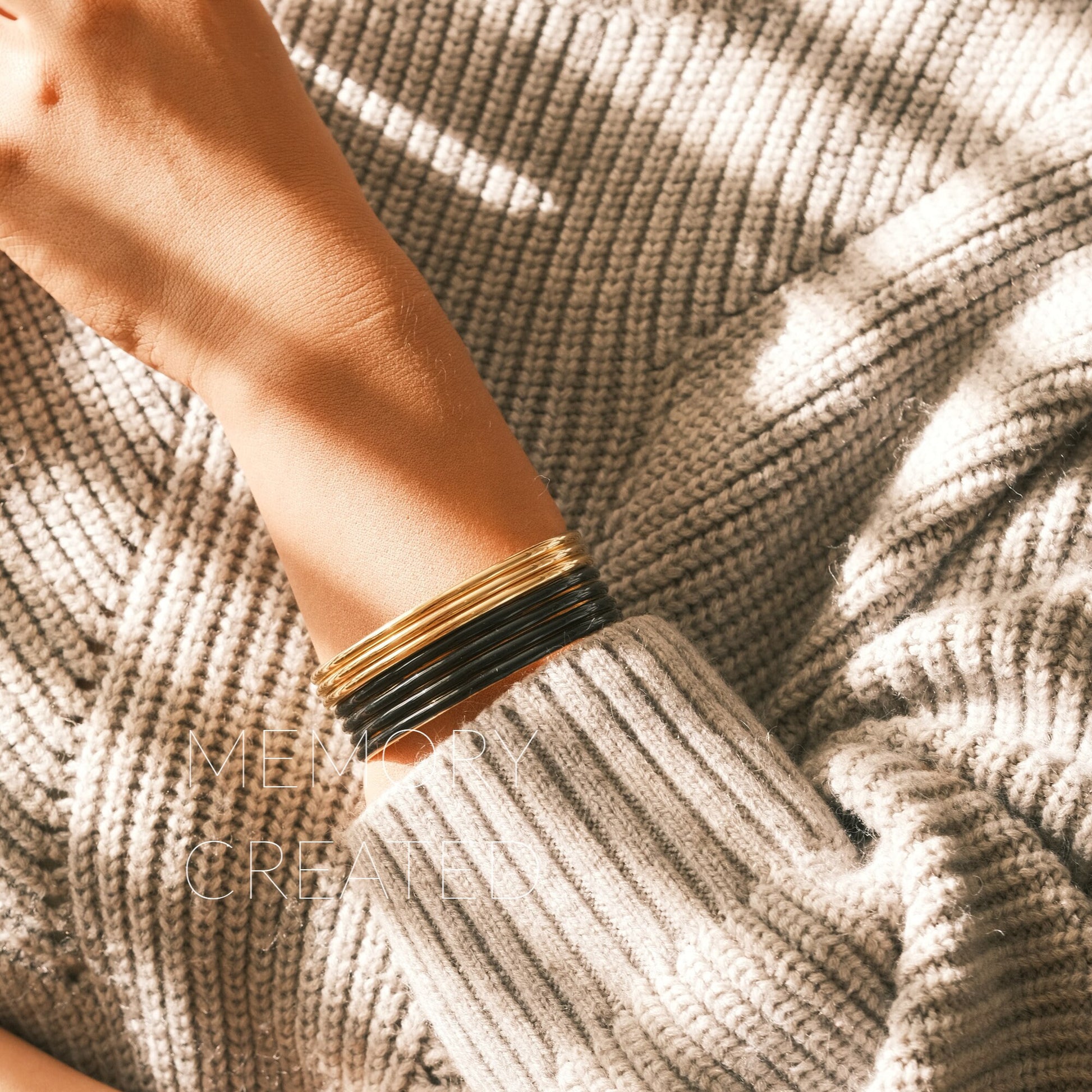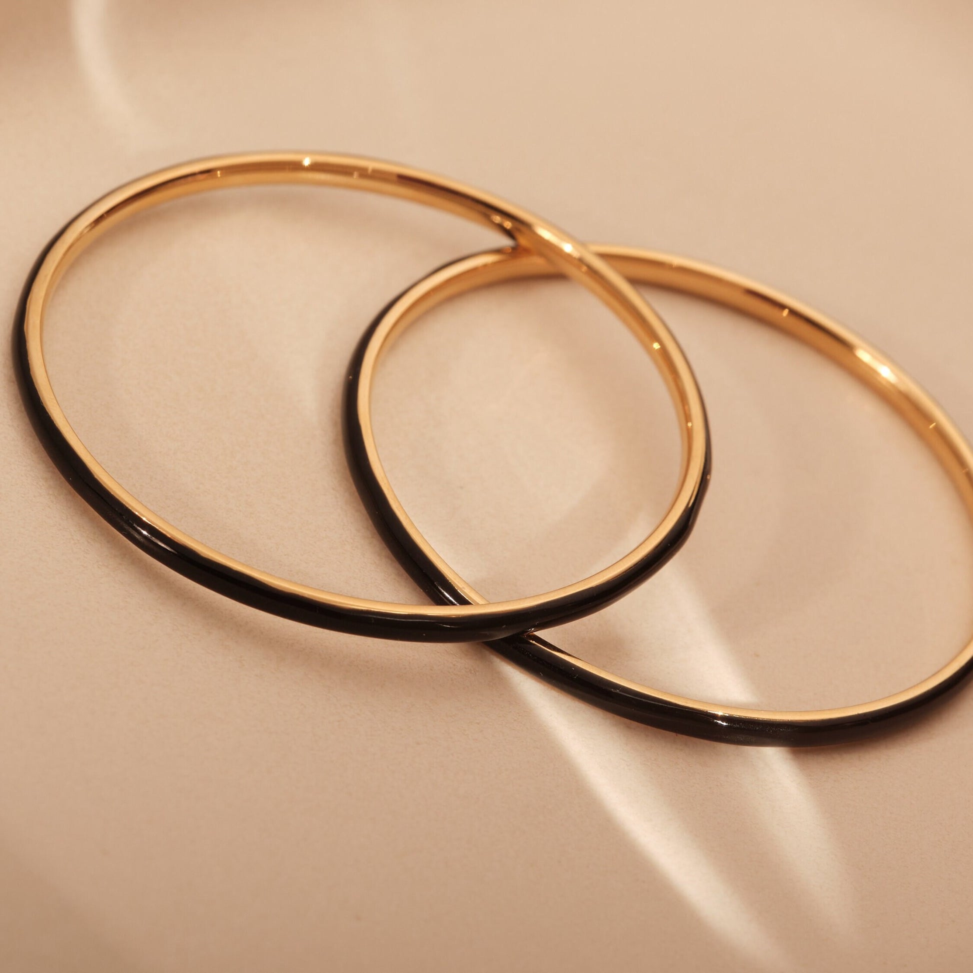 Black Bangle Bracelet, Gold Black Bangle for Women Plain Bangle Classic Slip On Bangle Tarnish Free Bangle Stackable Bangles Stacking Bangle