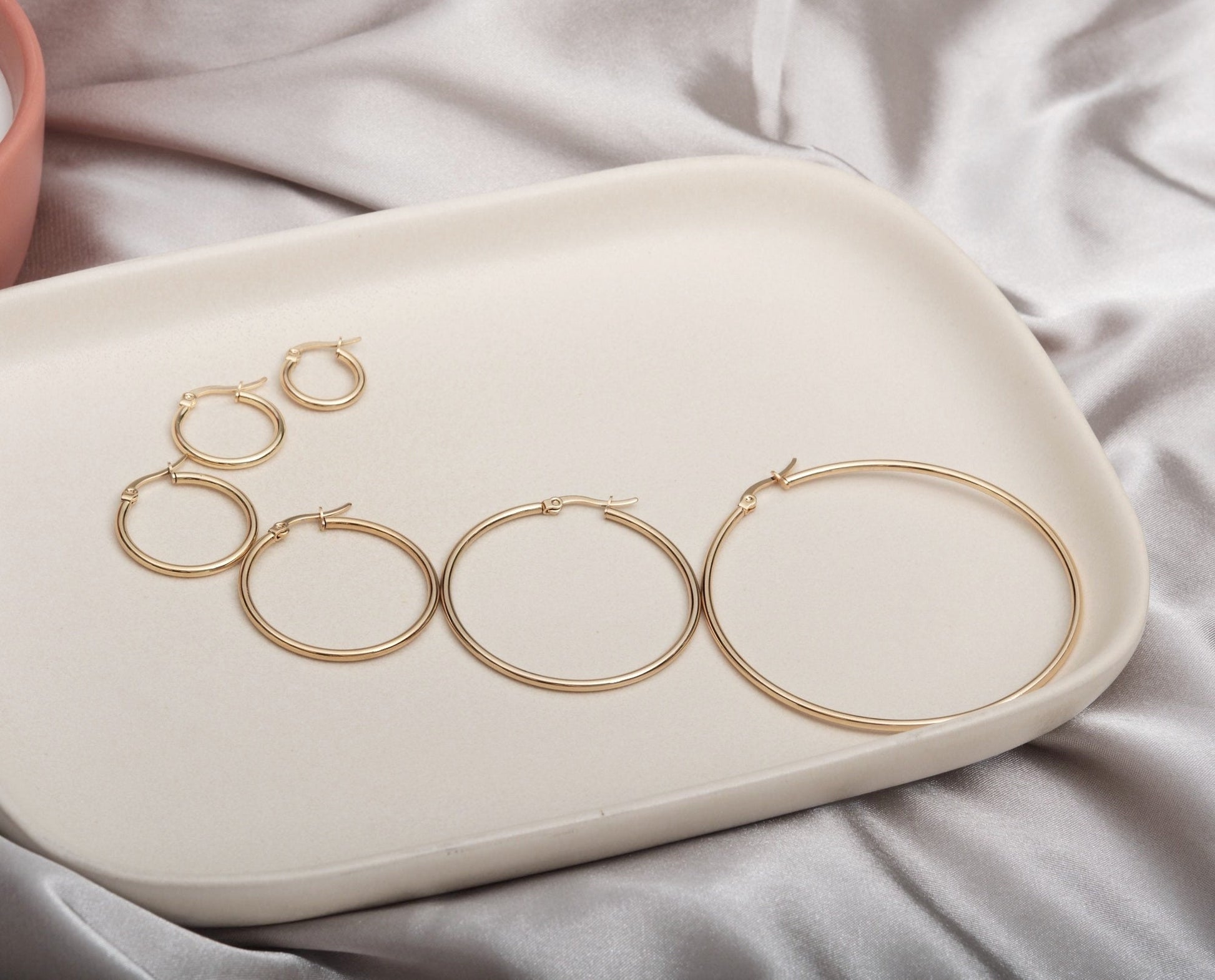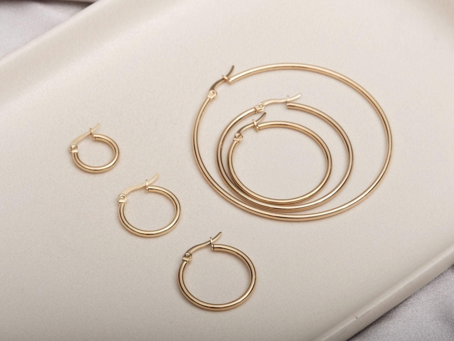 Dainty Hoop Earrings, Medium Hoop Earrings, Dainty Hoops, Delicate Hoop Earrings, Hoops, Thin Hollow Hoops 18K Gold Hoops Hypoallergenic