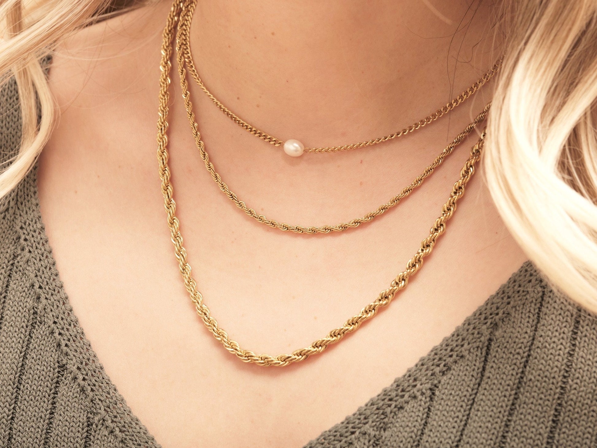 - Material: Gold expertly thick plated stainless steel. Won’t tarnish in water or sweat. Tarnish resist jewelry and waterproof. It won’t turn green! ( not like brass or alloy).