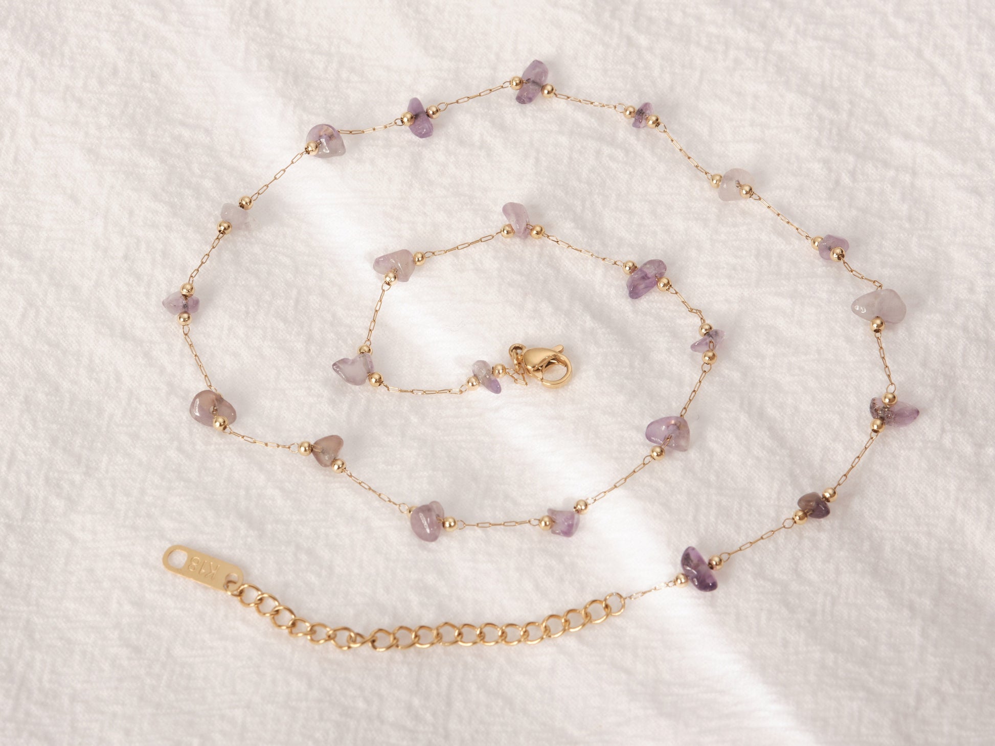 Gold Amethyst chain necklace, Natural Amethyst necklace, tiny amethyst beads chain, raw amethyst chain, tiny amethyst stone necklace gift