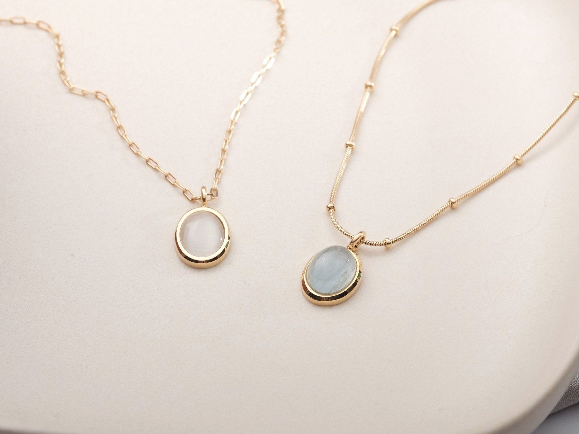 Gold Aquamarine Necklace, Crystal Necklace, March Birthstone, Oval Stone Necklace, Natural Aquamarine Pendant, Blue Agate, Vintage necklace