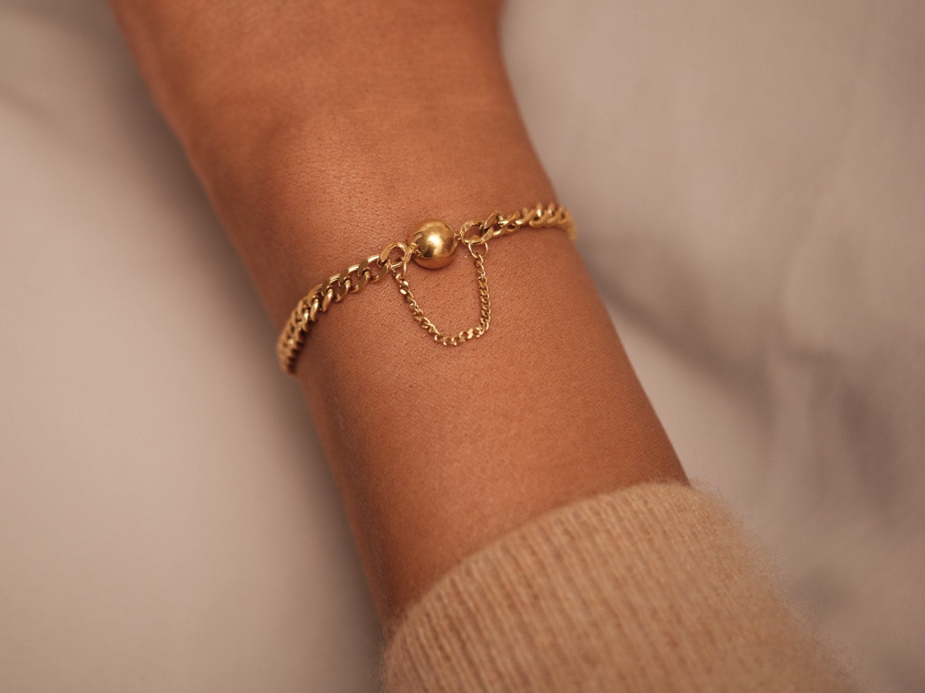Gold Ball Bracelet, Gold Chain Bracelet, Gold Bracelet, Link Chain Bracelet, Cuban Bracelet, Waterproof Bracelet Gift for Her Cuban Chain