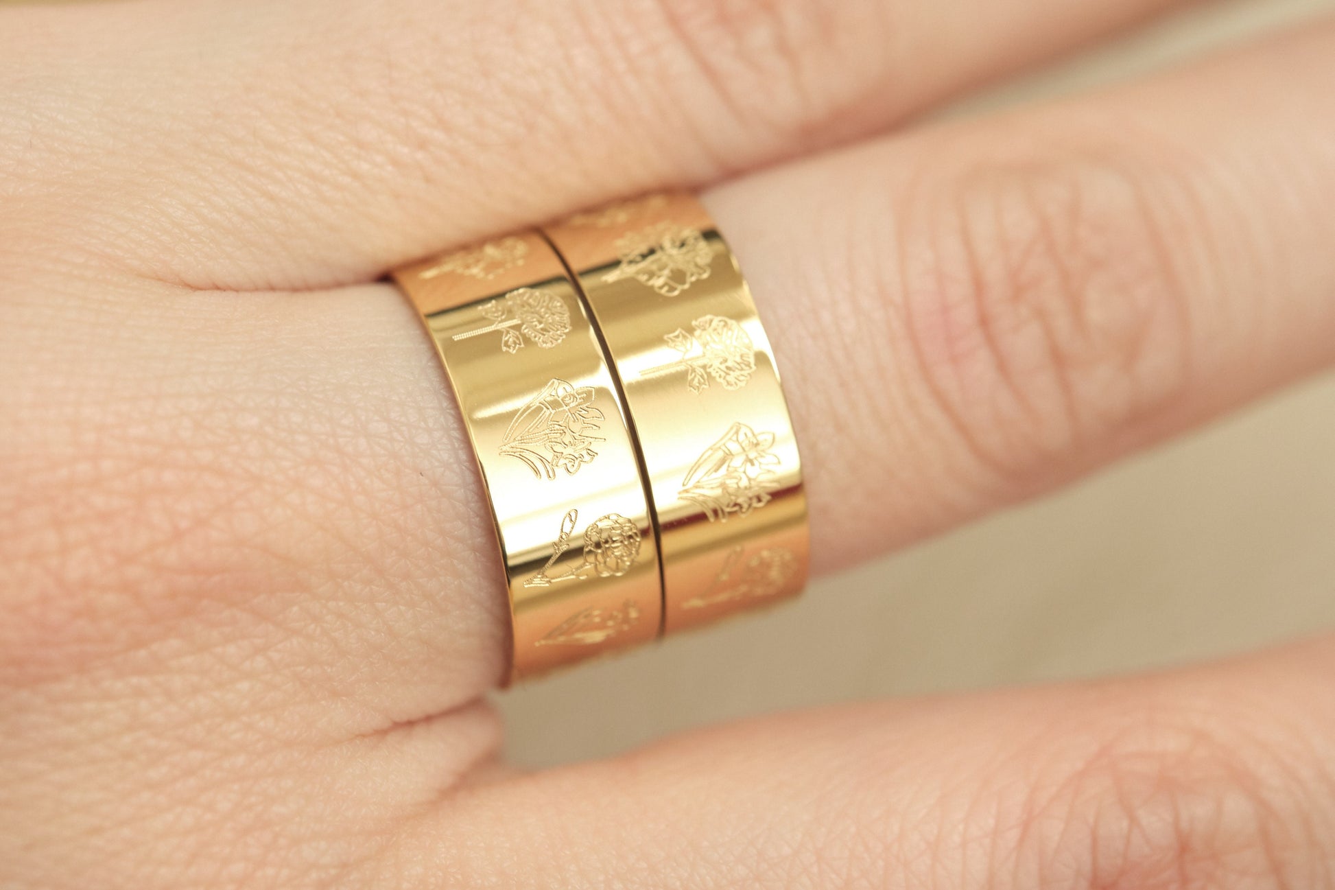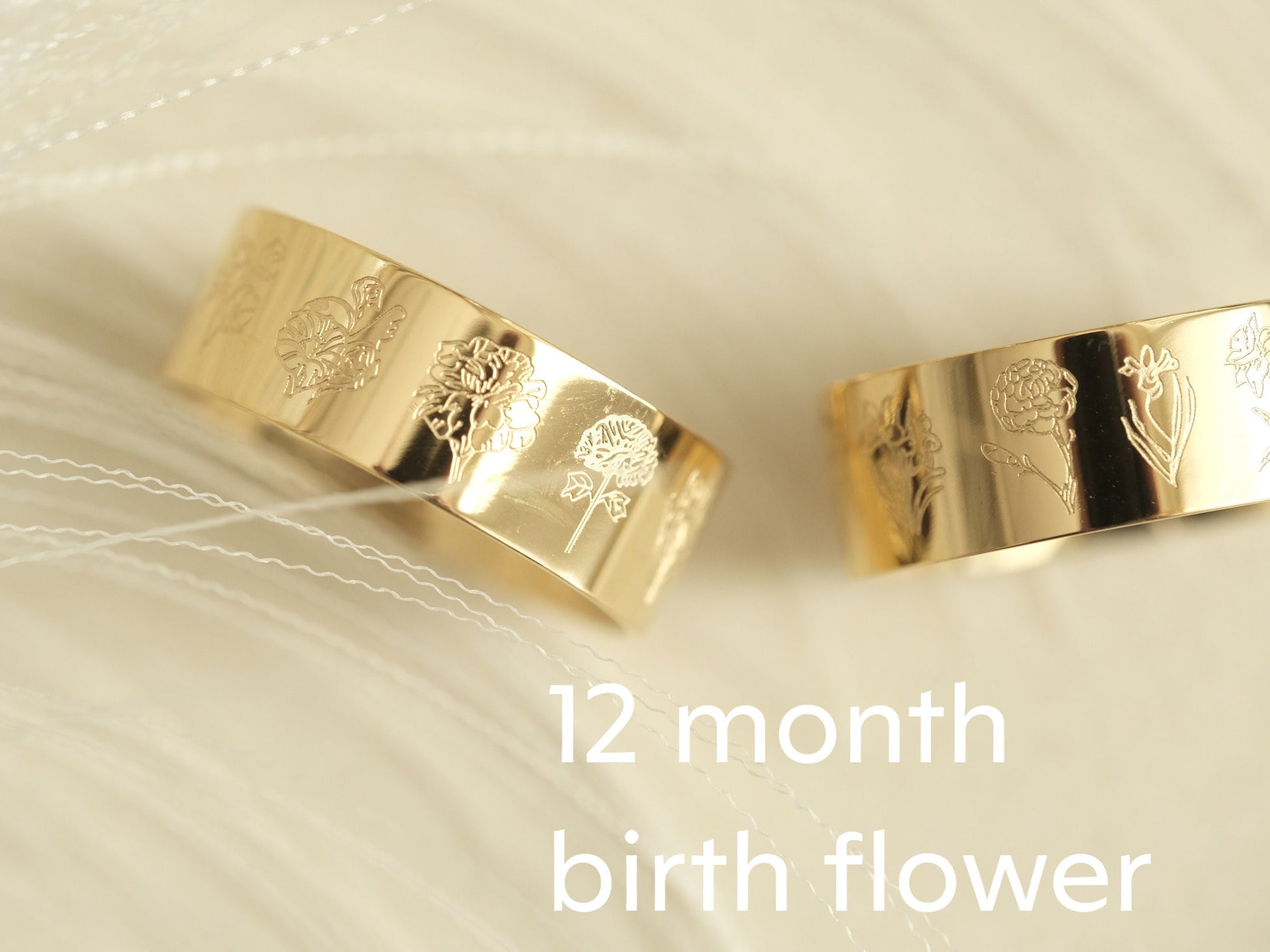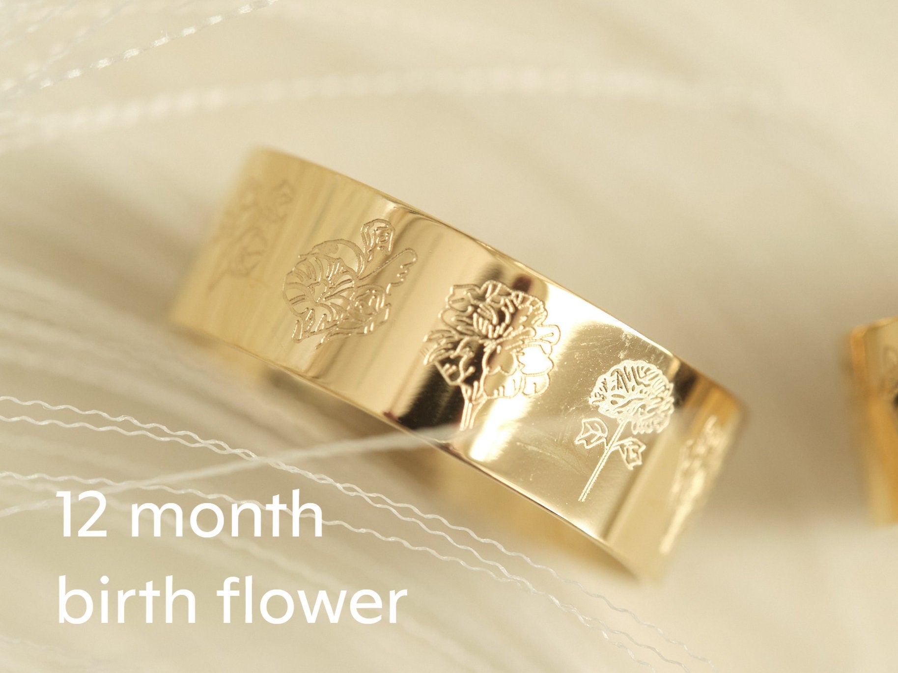 Gold birth flower ring, gold ring, birthday gift for her, month flower ring, personalized month flower jewelry, tarnish free ring, 12 months