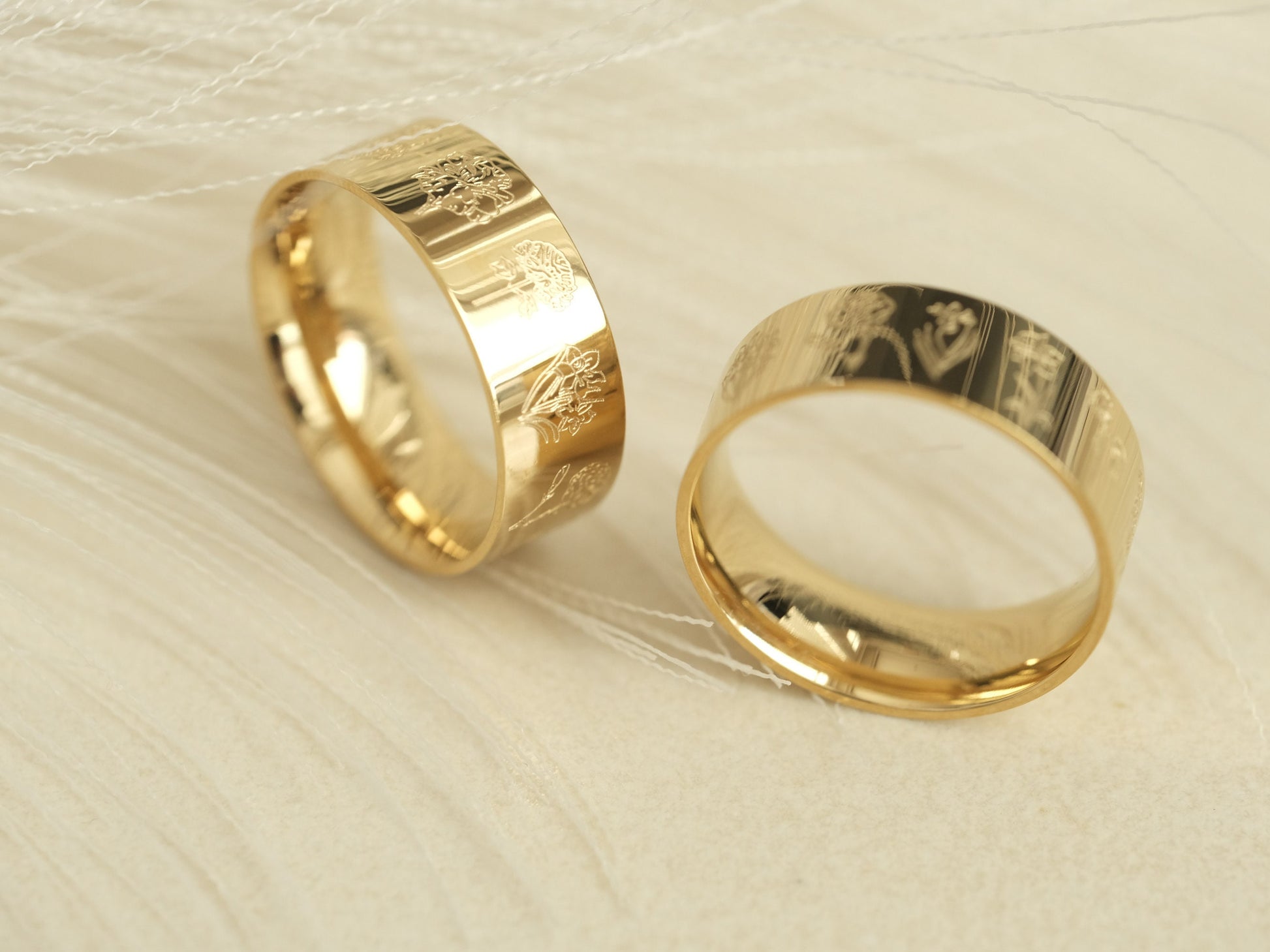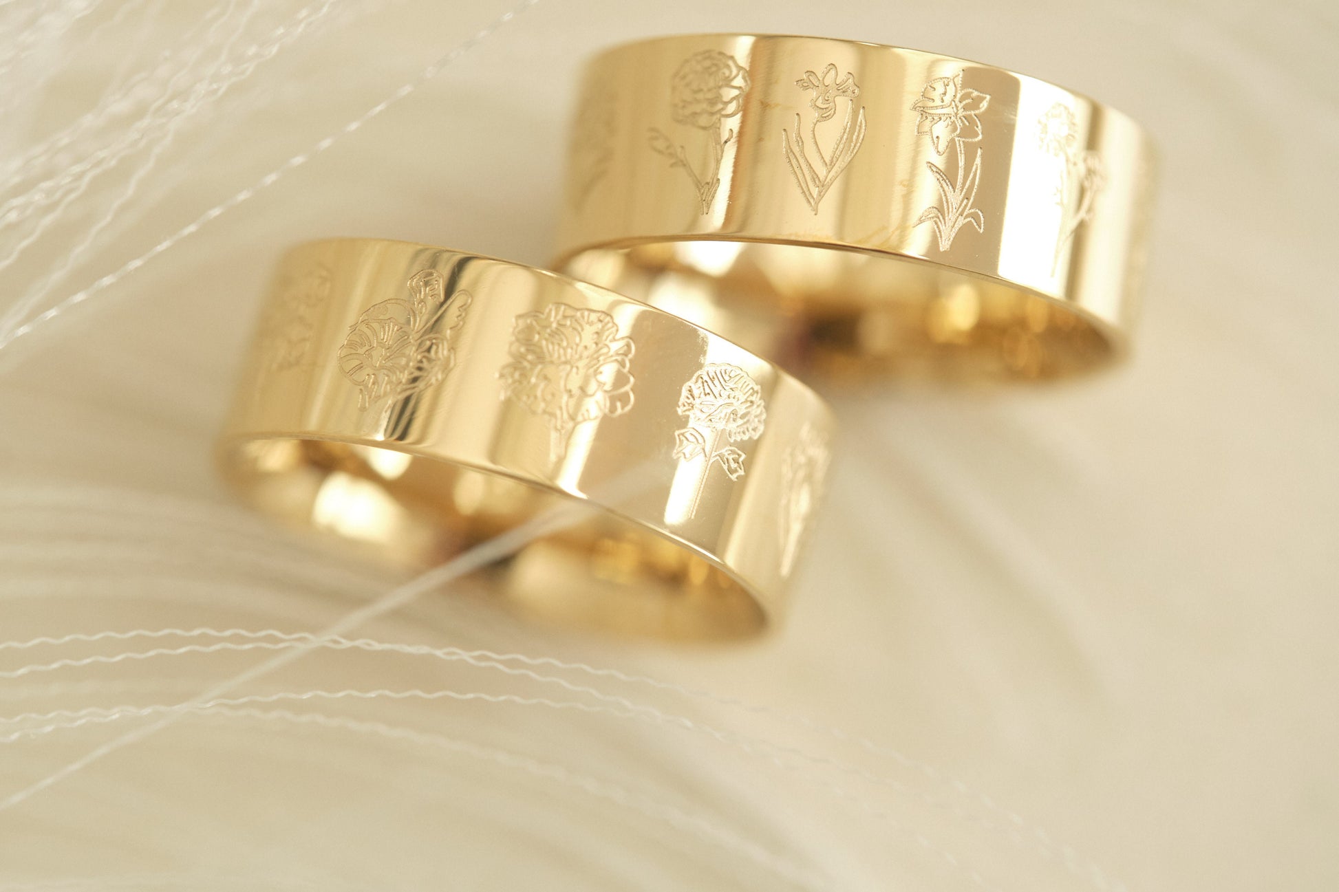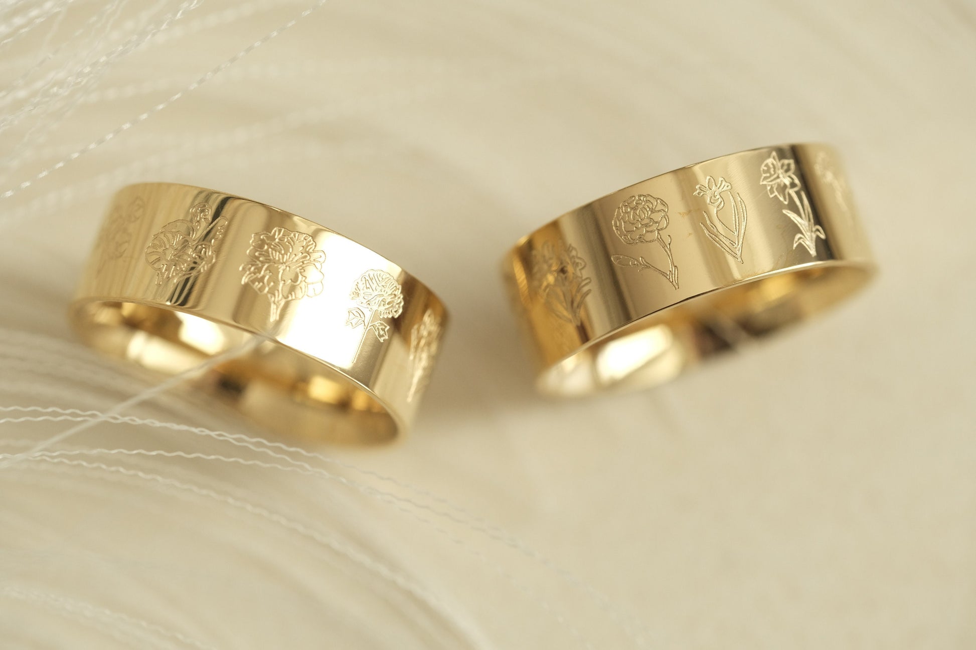Gold birth flower ring, gold ring, birthday gift for her, month flower ring, personalized month flower jewelry, tarnish free ring, 12 months