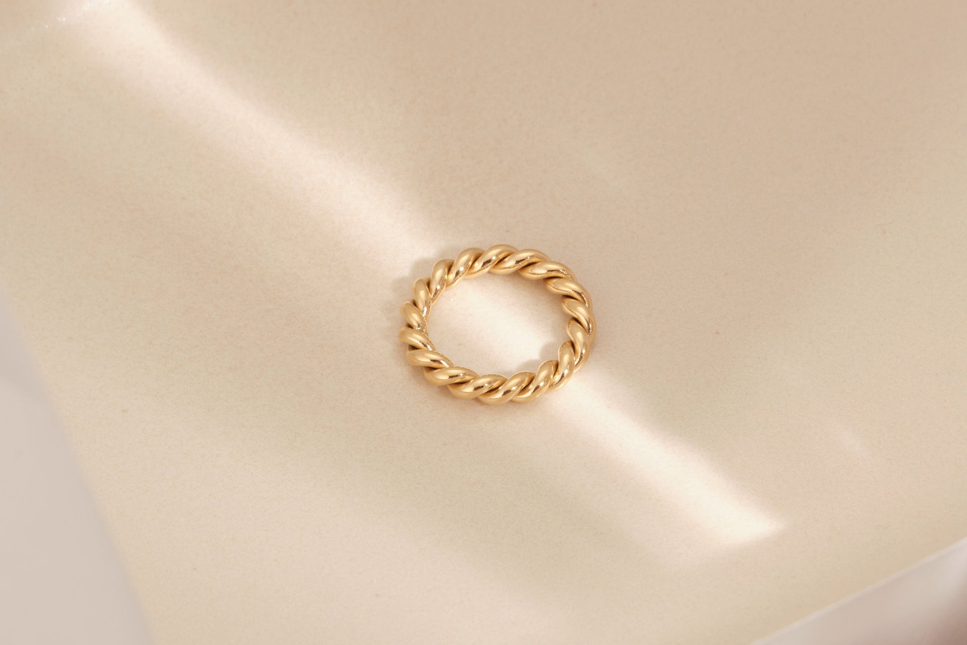 Gold Braided Rope Ring Twist Ring Gold Twisted Rope Wedding Band Gold Rope Ring Stacking Twist Ring Infinity Twisted Band WATERPROOF