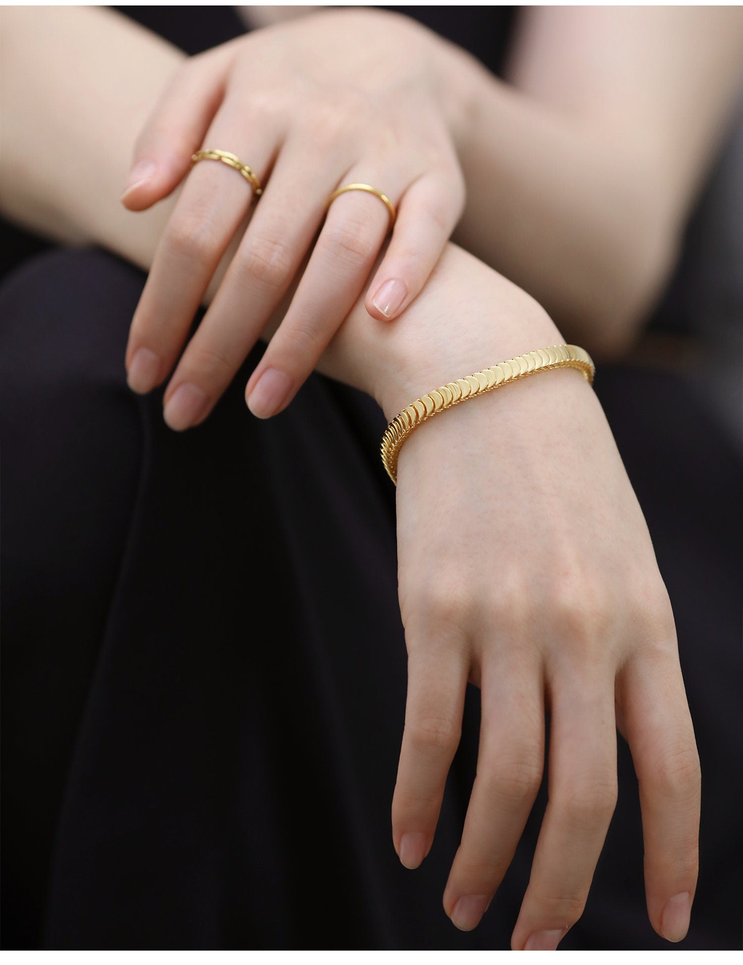 - High quality PVD coating Stainless steel. Won’t tarnish in water or sweat. It won’t turn green! ( not like brass or alloy).