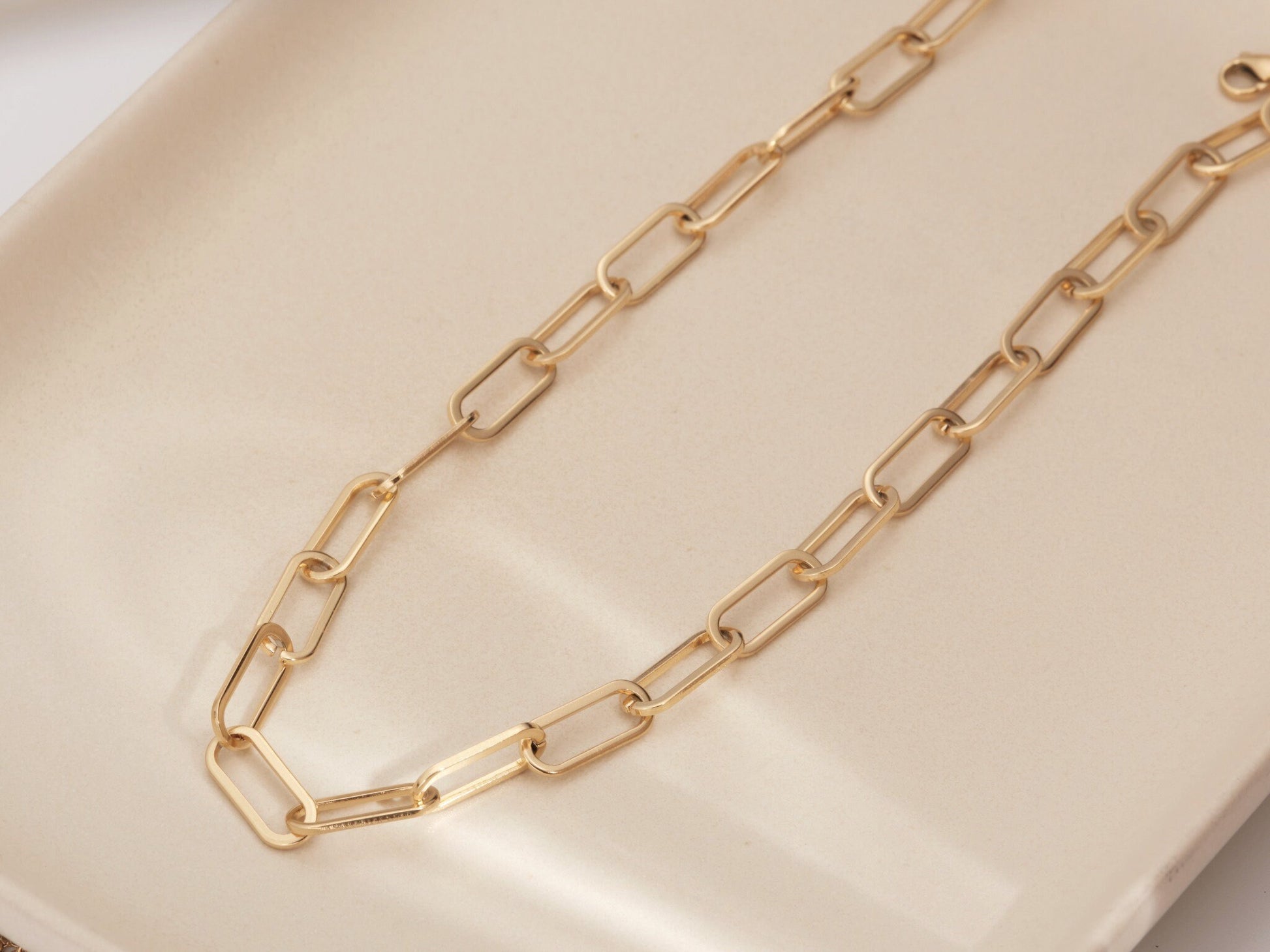 Gold Chunky Paperclip Necklace Gold Chain Necklace, Paperclip Chains, Rectangle Chains Necklace, Gold Link Chain Necklace, WATERPROOF