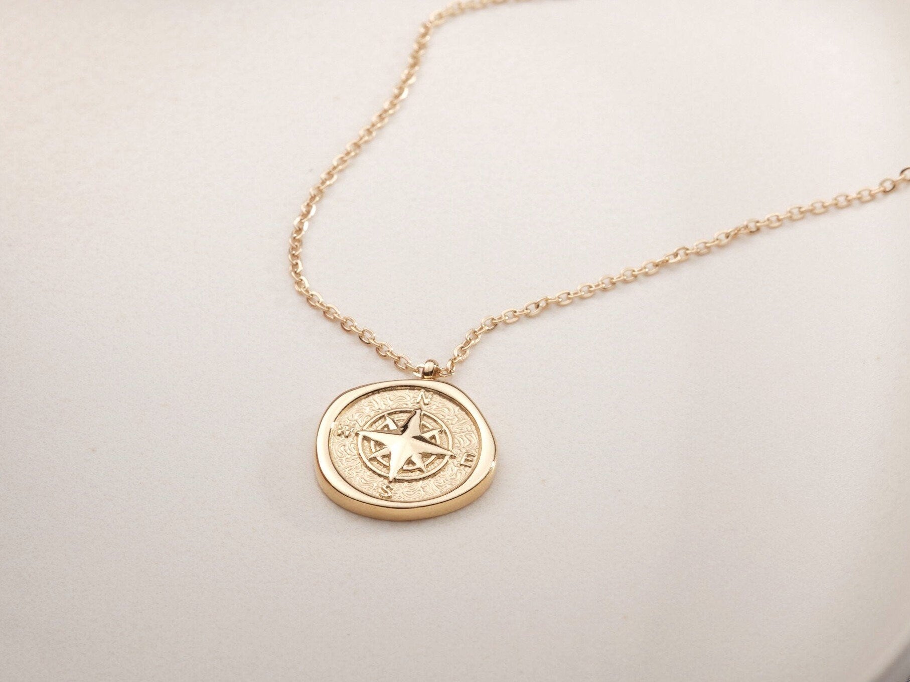 Gold Compass Necklace Gold PVD Coating Compass Necklace Mens Compass Necklace Gold North Star Necklace Vintage Necklace Wax Seal WATERPROOF