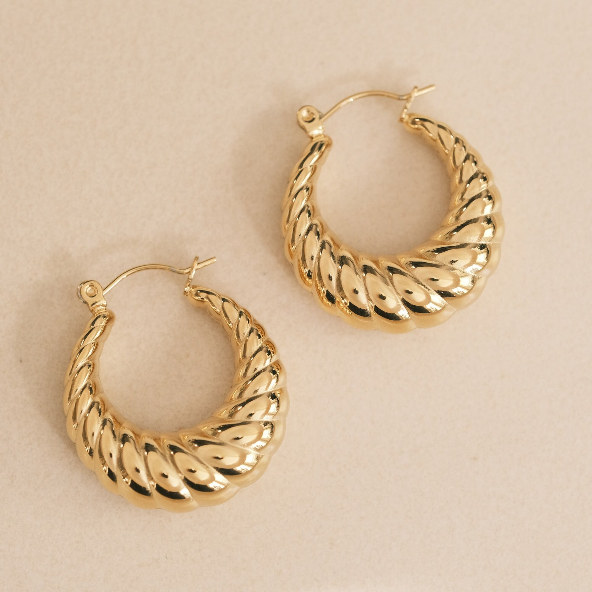 Gold Croissant Hoop Croissant Earrings Twisted Earrings Minimal Rope Braid Hoop Earrings Bohemian Hoop Earring bubble earring, gold earring