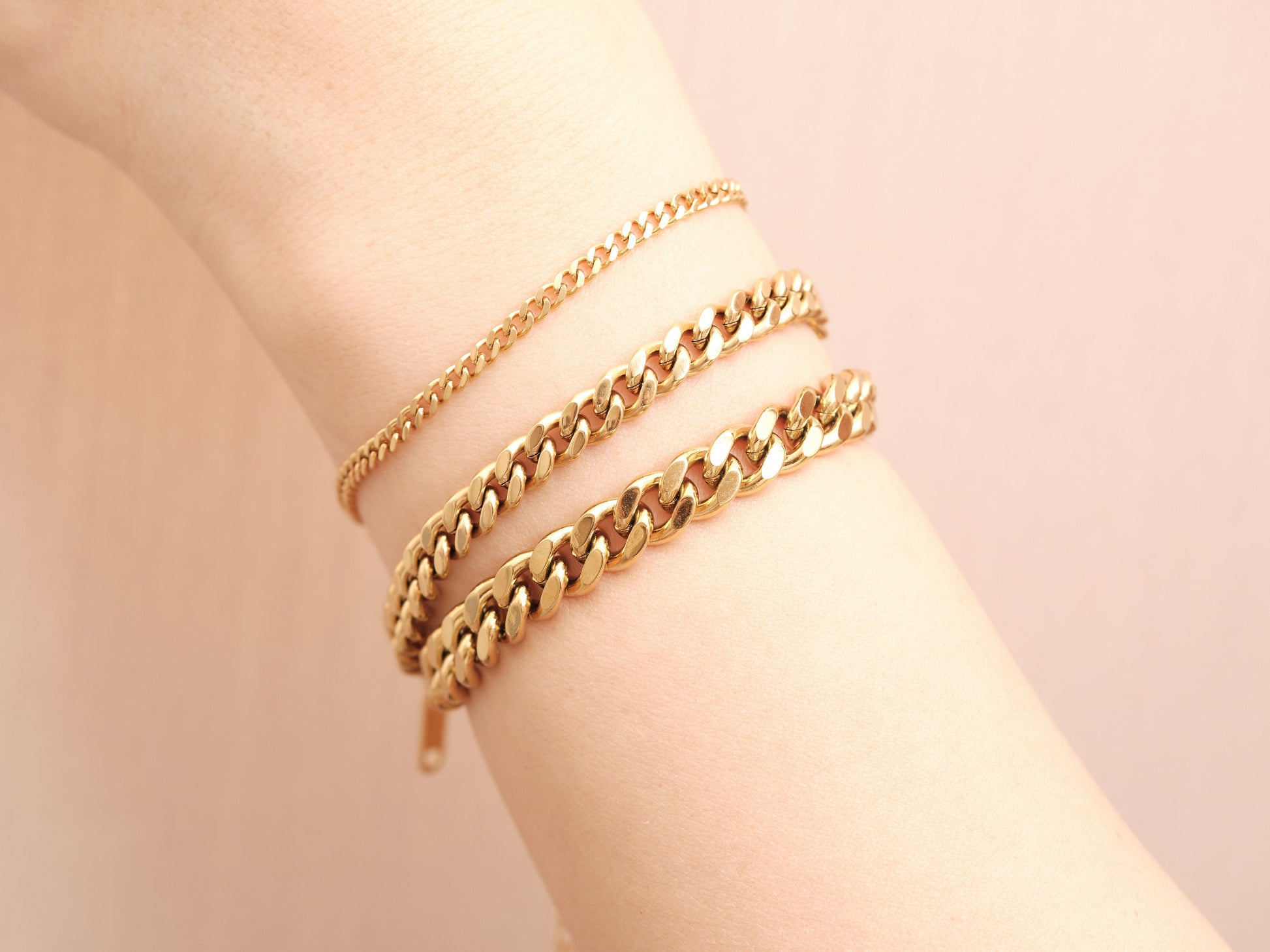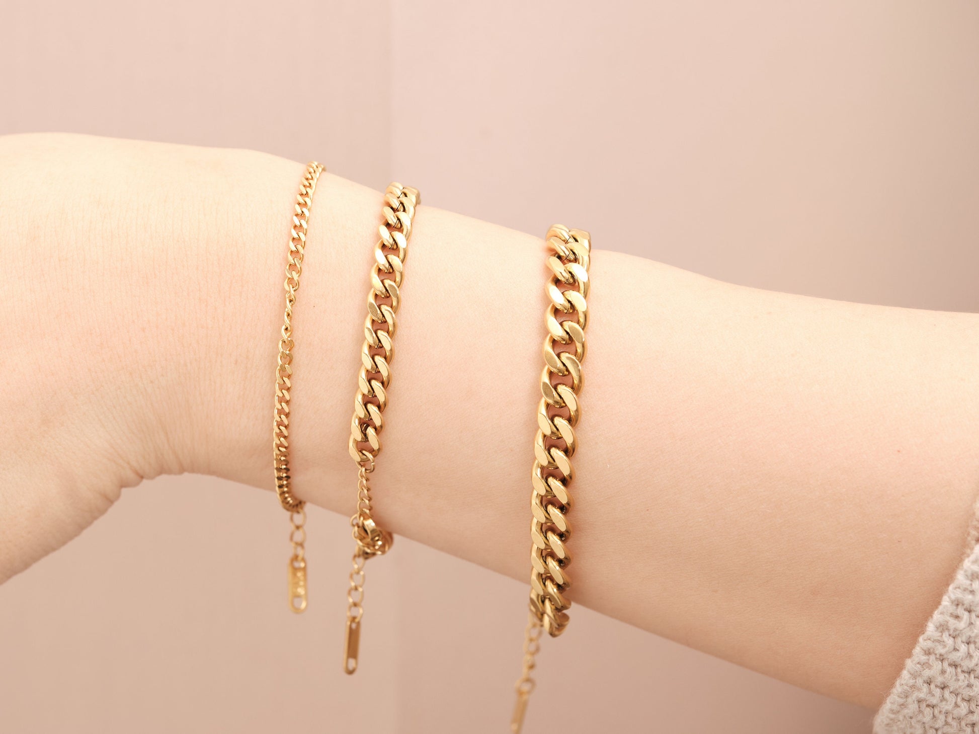 Gold Cuban Chain Bracelet, Gold Bracelet, Linked Chain Bracelet, Gold Curb Chain Bracelet, Gold Chunky Cuban Chain, Waterproof