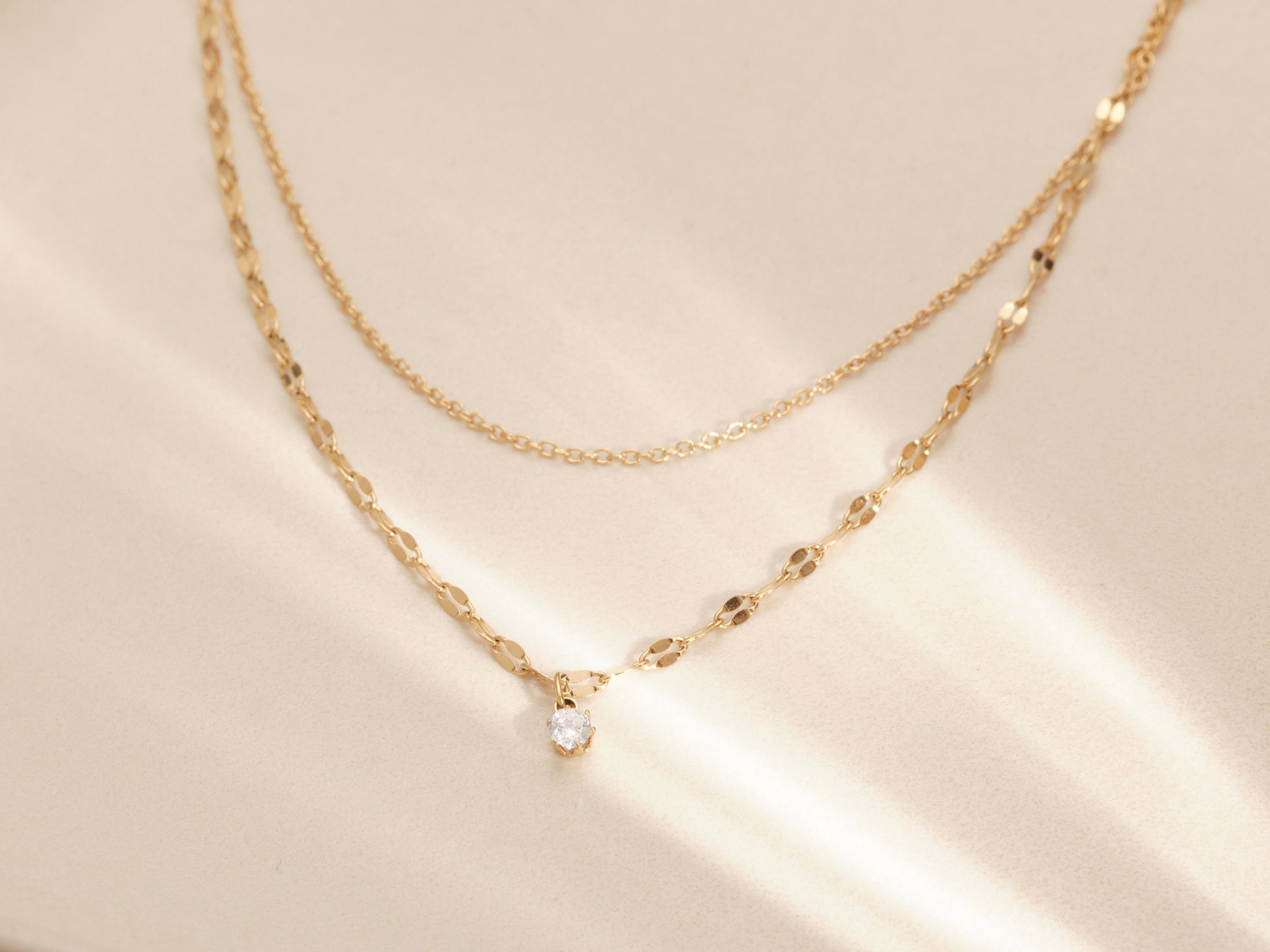 Gold CZ Necklace, Tiny Zircon Necklace, Double Layered Necklace, Dainty Necklace, Dainty CZ Necklace, Float CZ Necklace, waterproof
