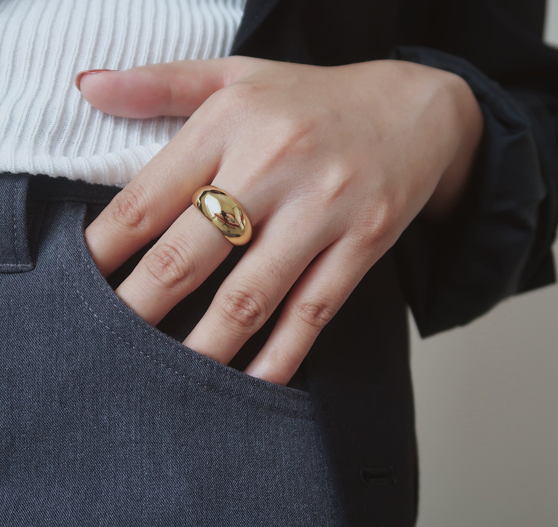 Gold Dome Ring Wide Band Ring Chunky Ring Stacking Band Thick Dome Ring Bubble Ring Minimalist Ring Thin Ting Dainty Ring Gift WATERPROOF
