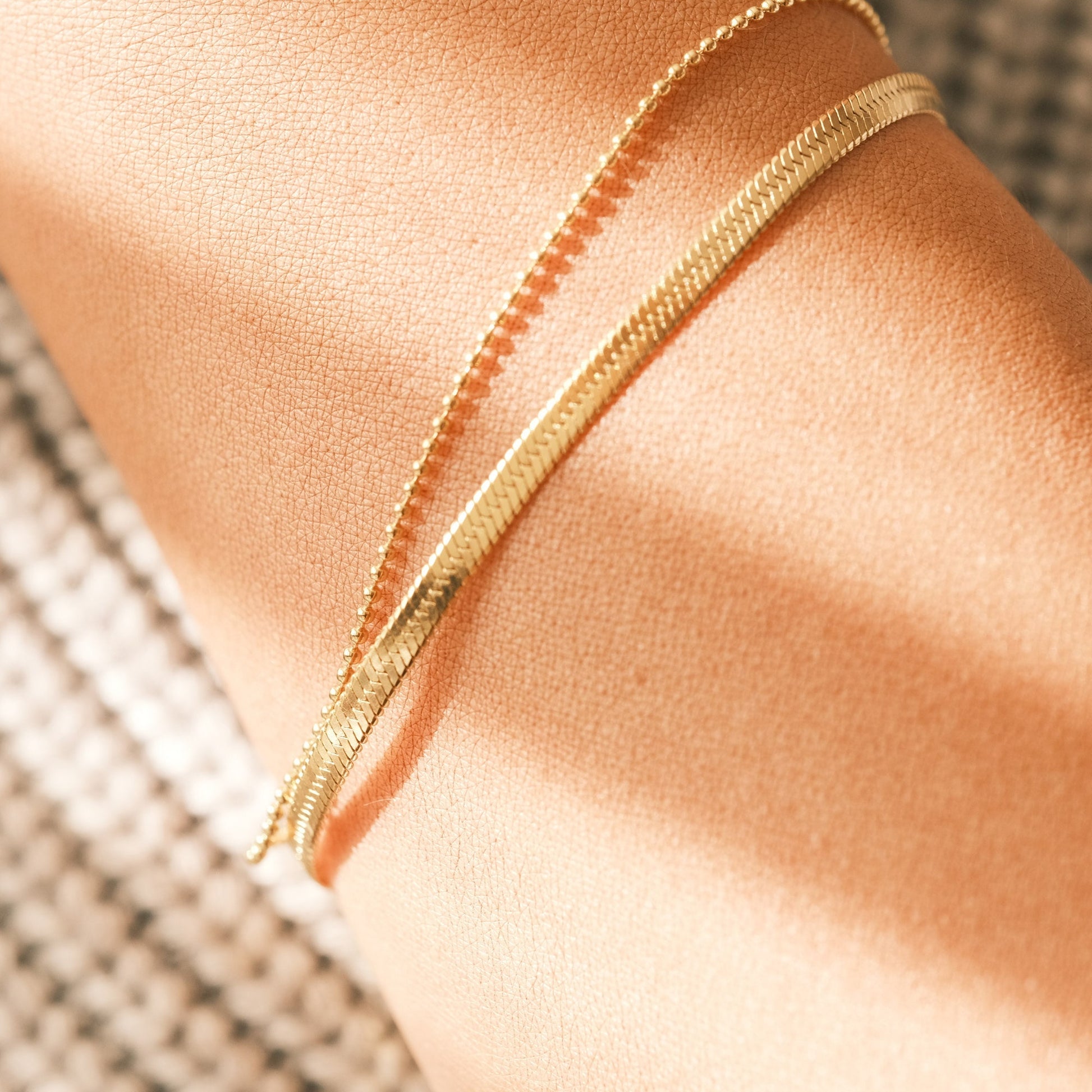 Gold Double Chain Bracelet, Gold Double Chain Anklet, Herringbone Bracelet, Snake Chain Bracelet, Gold Anklet, Snake Chain Anklet Bead Chain