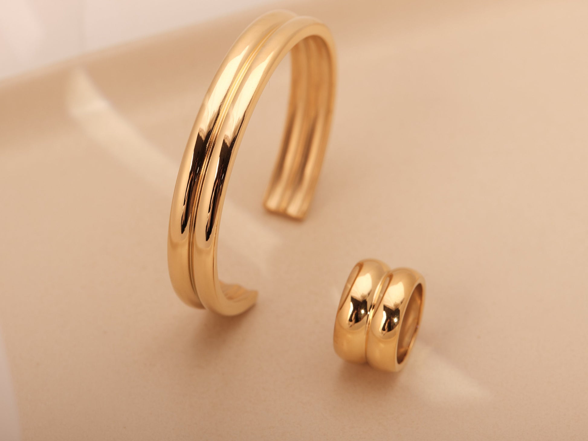 Gold Double Ring, Gold Ring, Wide Band, Thick Ring, Chunky Ring, Chic Ring, Statement Ring, Bubble Ring, Gold Trendy Ring, Cute Ring, Gift