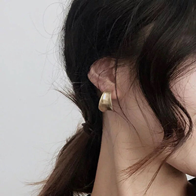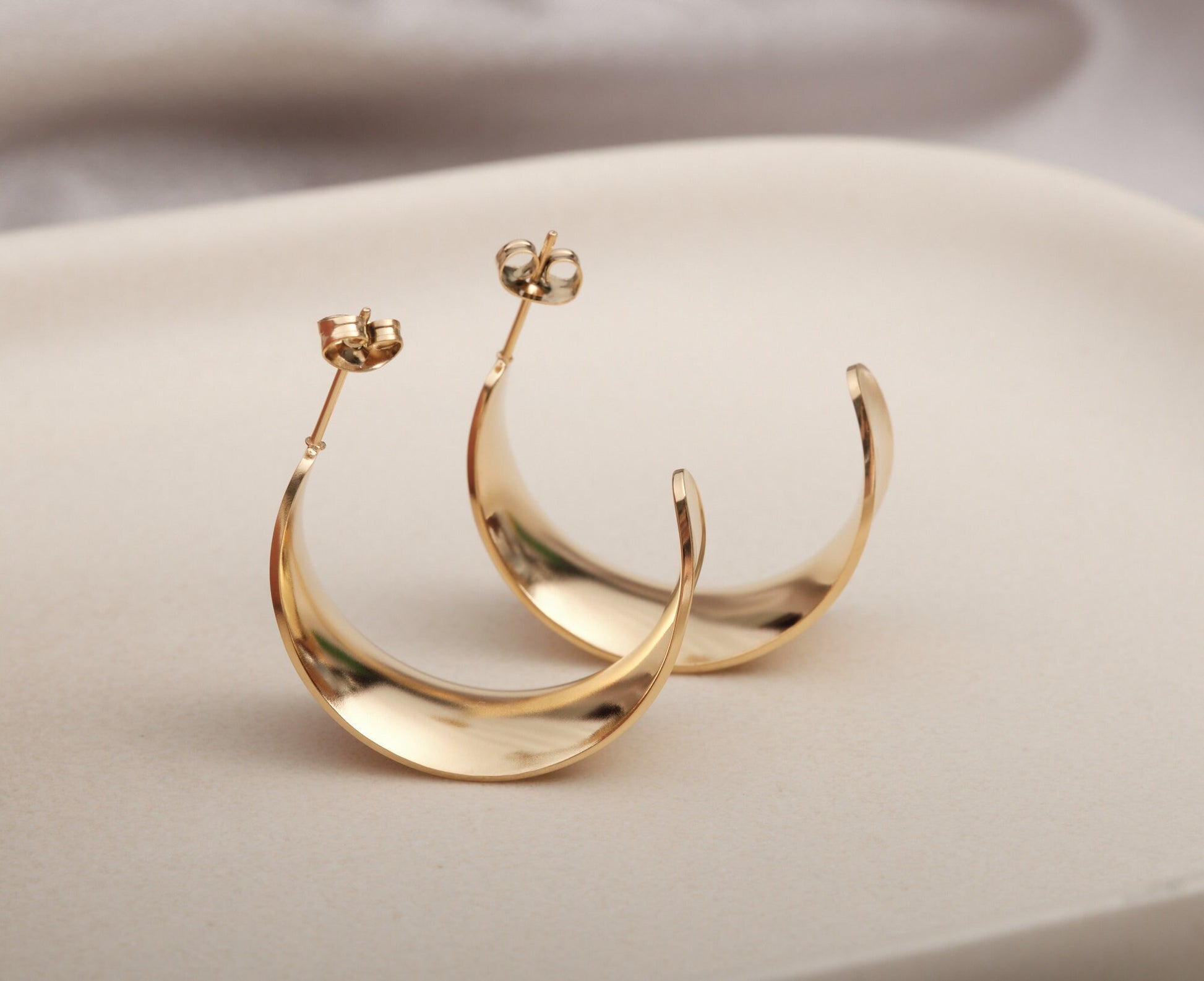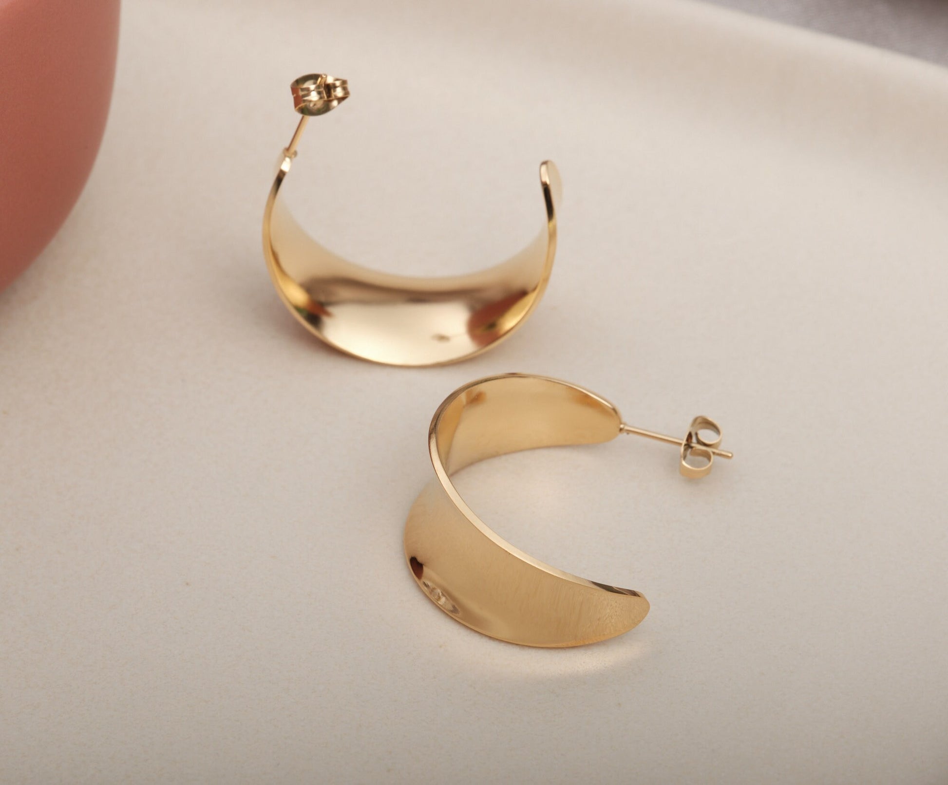 Gold Earrings, Gold Dome Earrings, Stainless Steel Earrings, Gold Wide Open Hoop Earrings, Minimalist Earrings, Modern Earrings, Gift Hoops