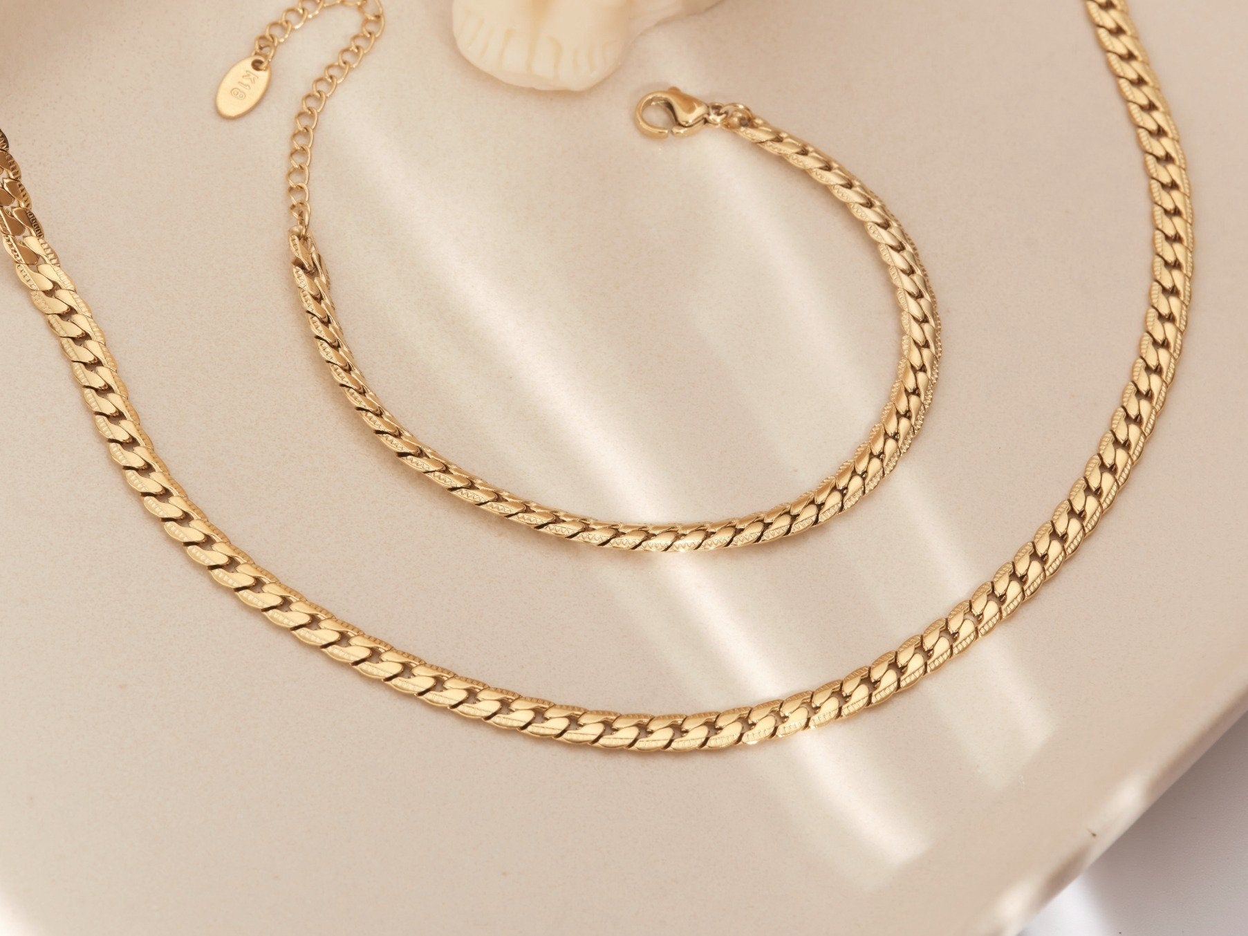 We're using this PVD coating technology on our jewelry. And this coating will make jewelry last way longer than normal gold plating jewelry. It won't tarnish in water or sweat, also won't turn green.