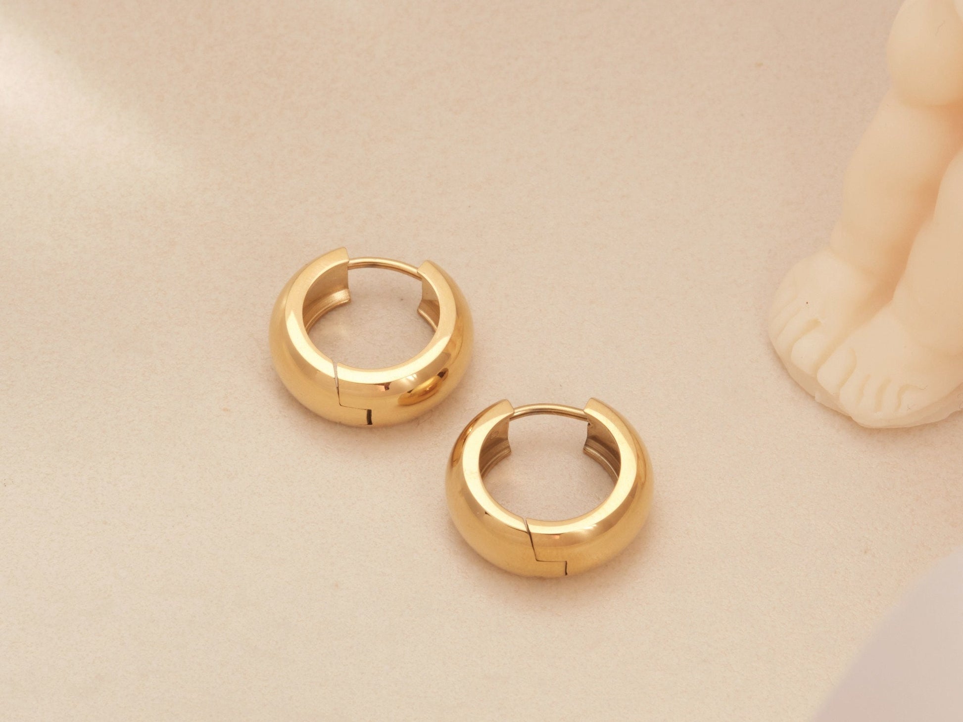 Gold hoop earring hypoallergenic, gold hoop earrings, thick hoop earrings, Gold Huggie Hoop Earrings, chunky Huggie, WATERPROOF hoops