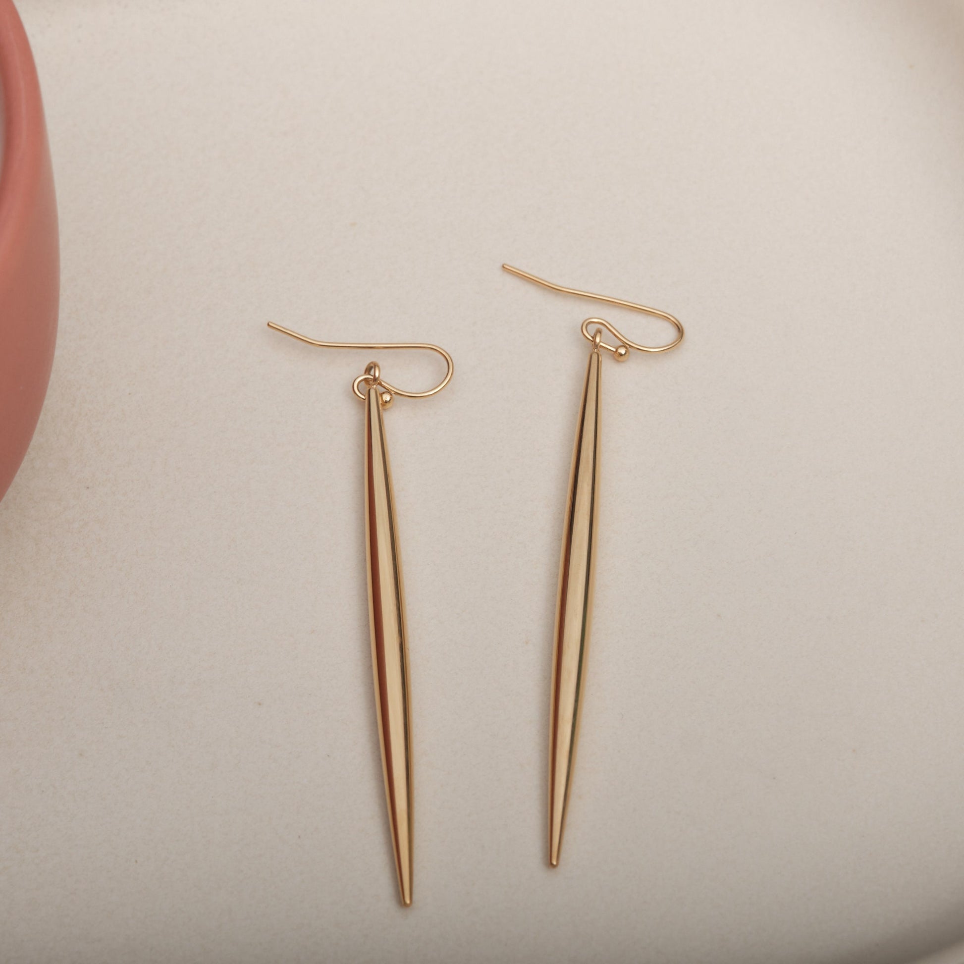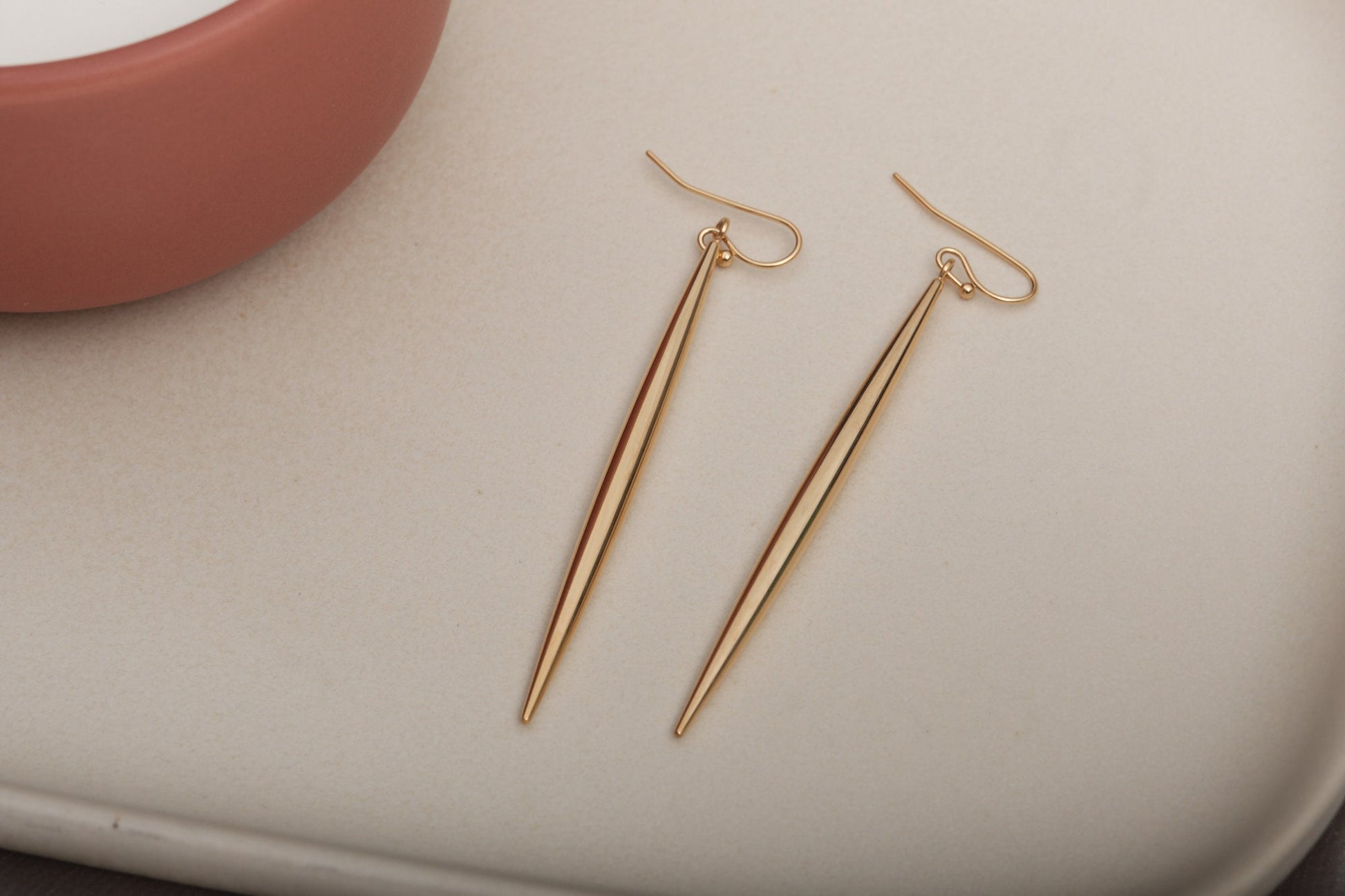 Gold Long Spike Earrings, Gold Spike Earrings, Gold Spike Dangle Earrings, Minimalist Earrings, Modern Look Earrings Gold Dangling earring