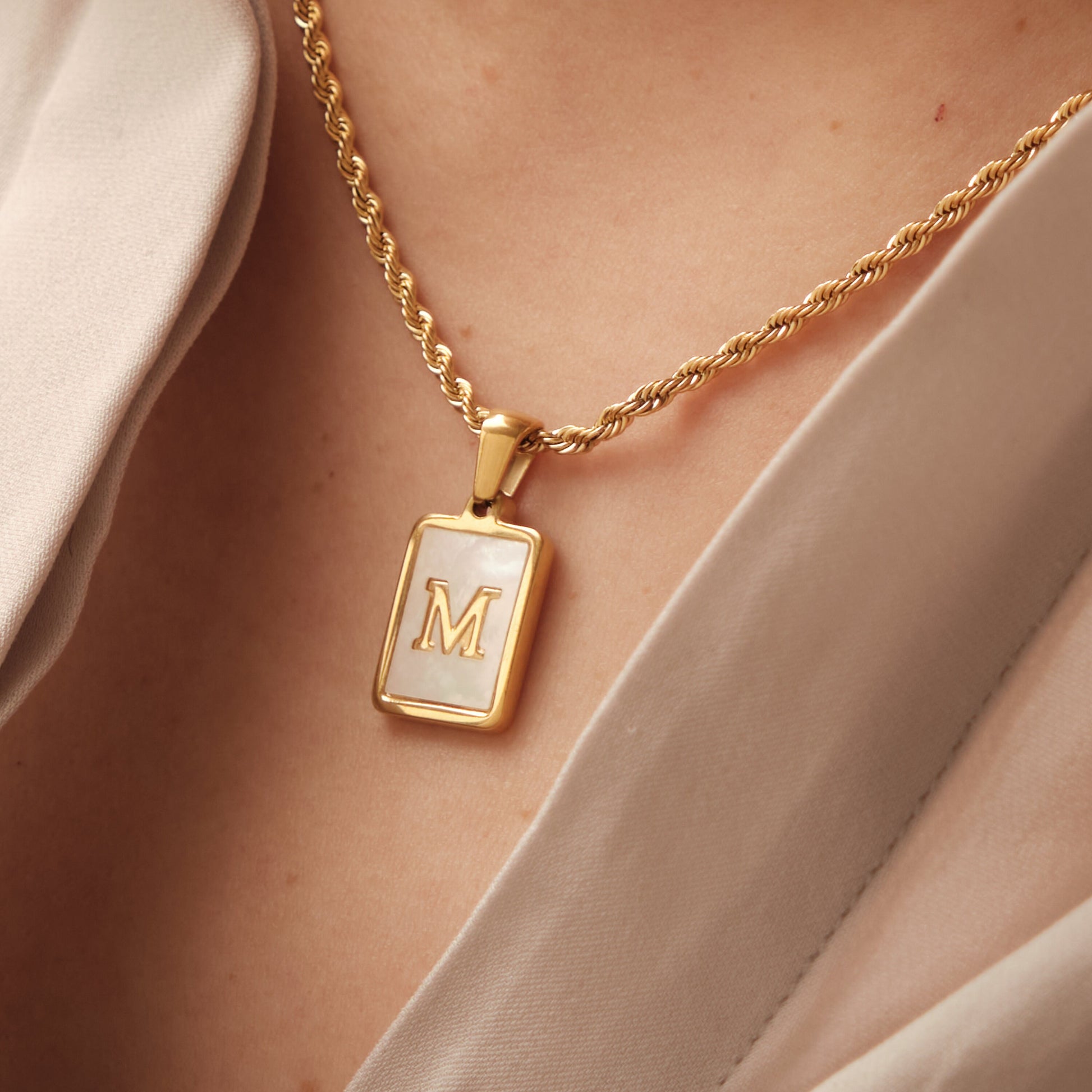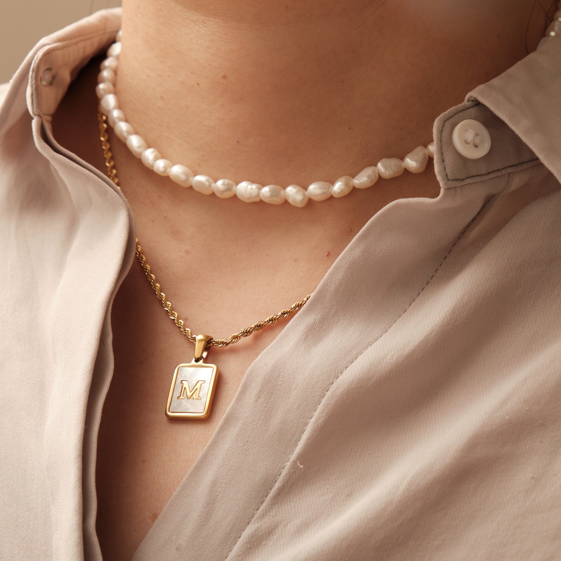 Gold Mother of Pearl Initial Necklace, 18K Gold Stainless Steel Necklace, Antitarnish, Waterproof, Hypoallergenic jewelry Mother's Day Gift