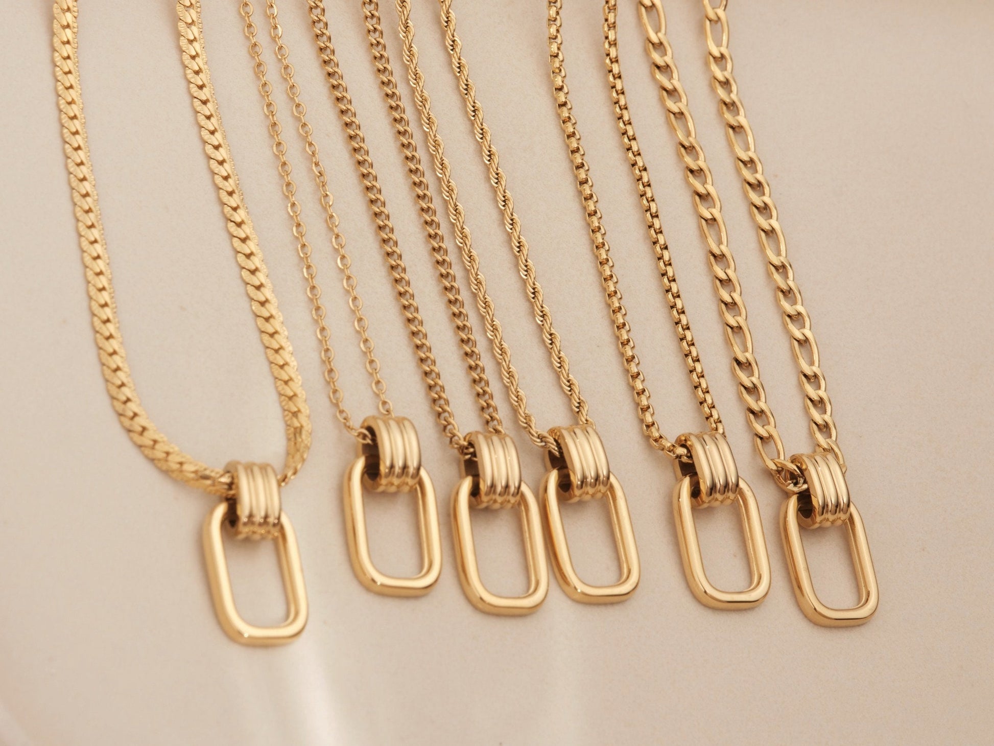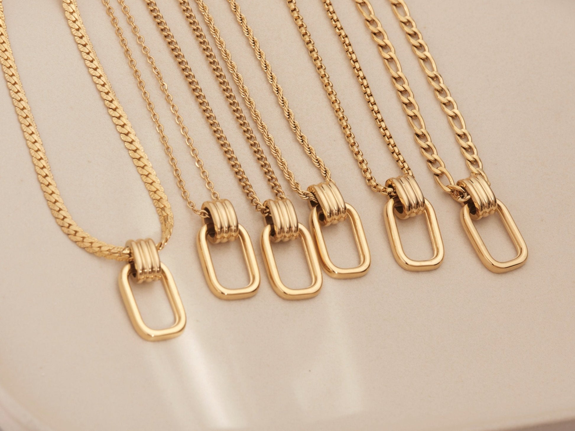 Gold Open Rectangle Necklace, Simple Minimal Layering, Cable Chain, Geometric, Open Bar Pendant Necklace, Best choose for Modern Look