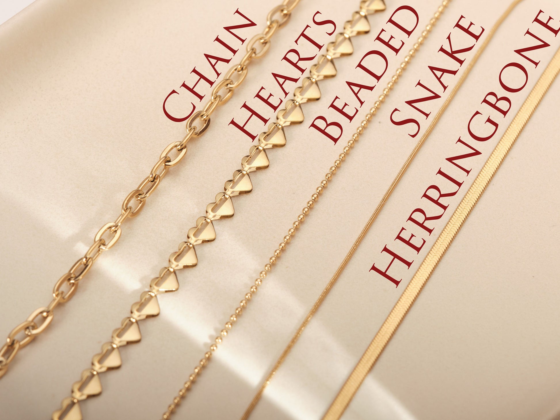 Gold Pave Hearts Anklet, Gold Anklets, Gold Snake Chain Anklet, Gold Herringbone Anklet, Link Chain Anklet, Beads Anklet, WATERPROOF Anklet
