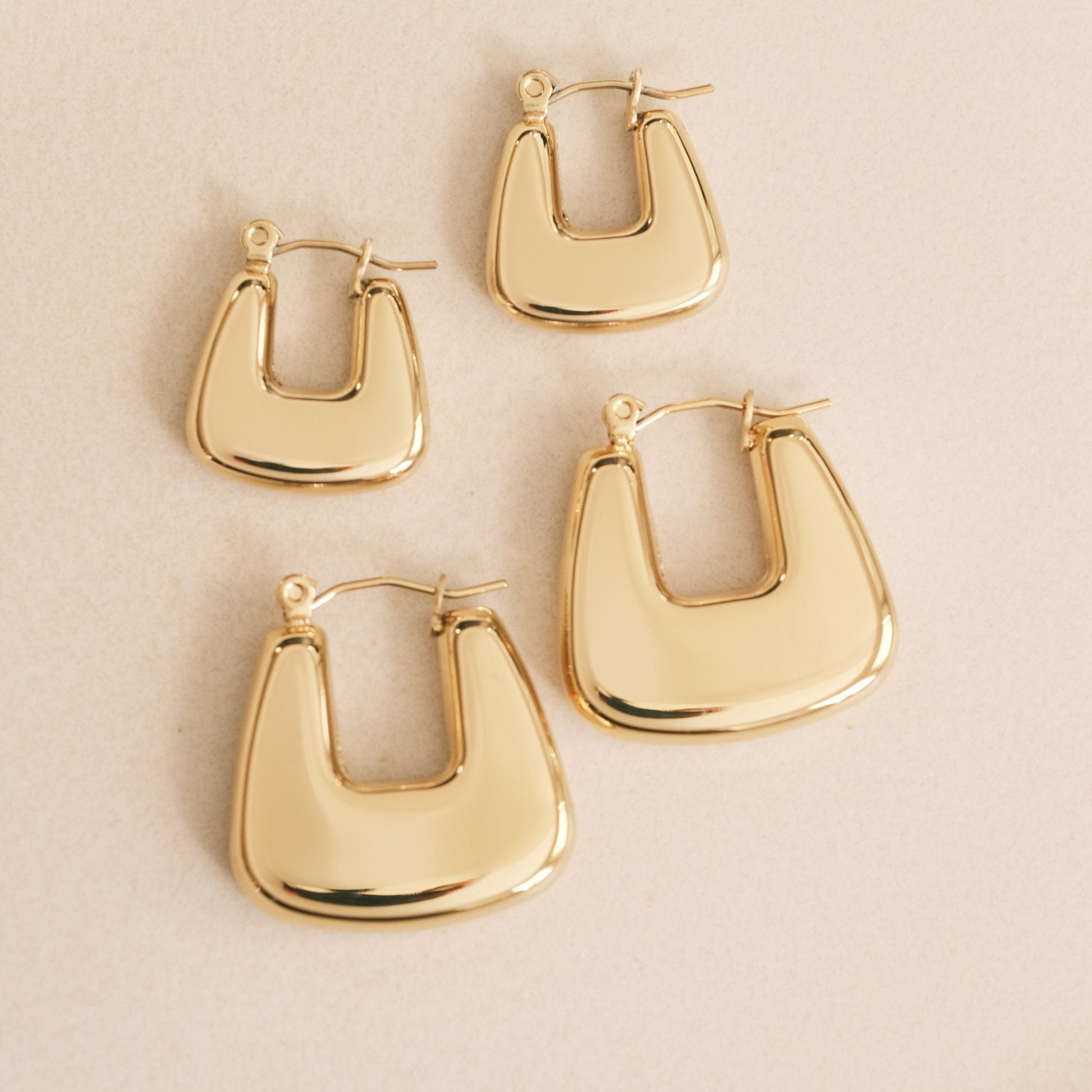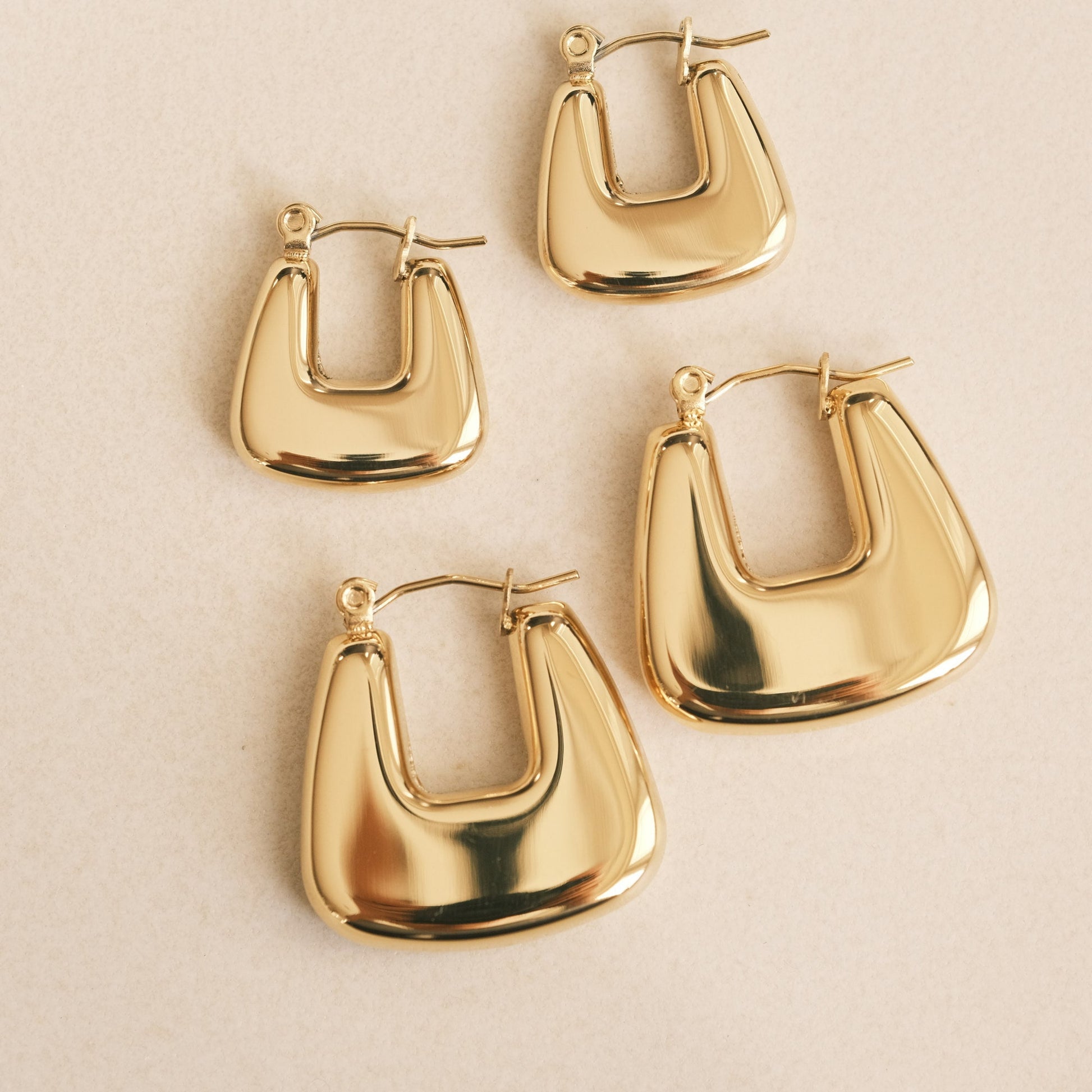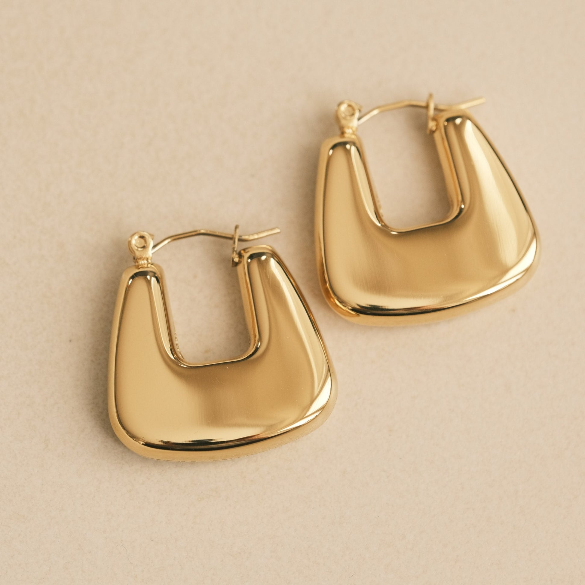 Gold Square Hoop Earring, Light Weigh Earring, Gold Earring, Chunky Earring, Gold Bubble Earring, Dainty Earring, Cute Earring, Waterproof