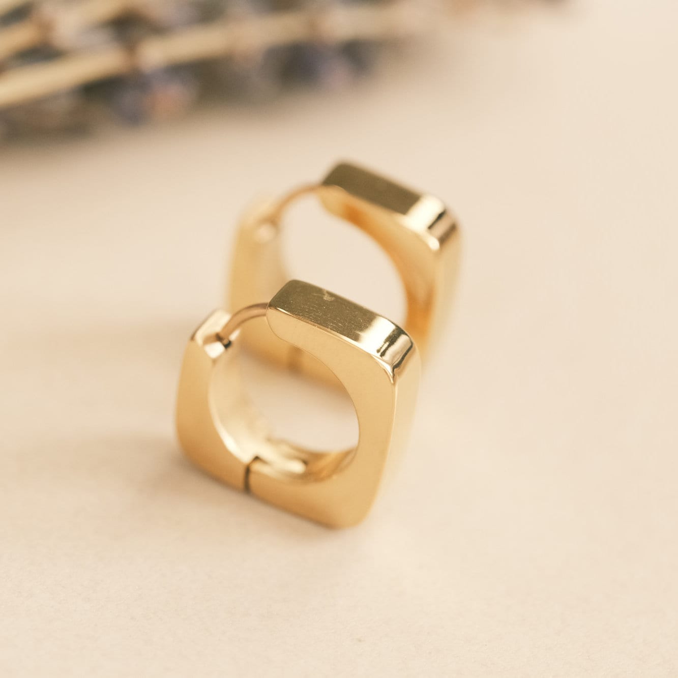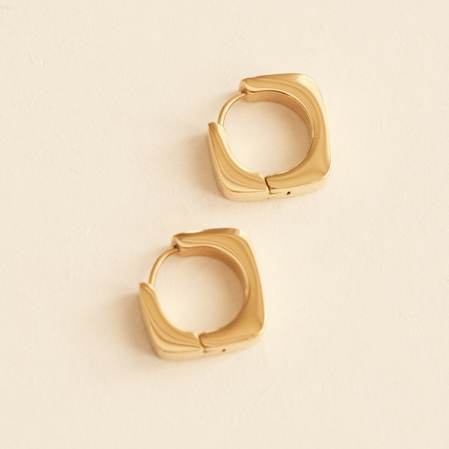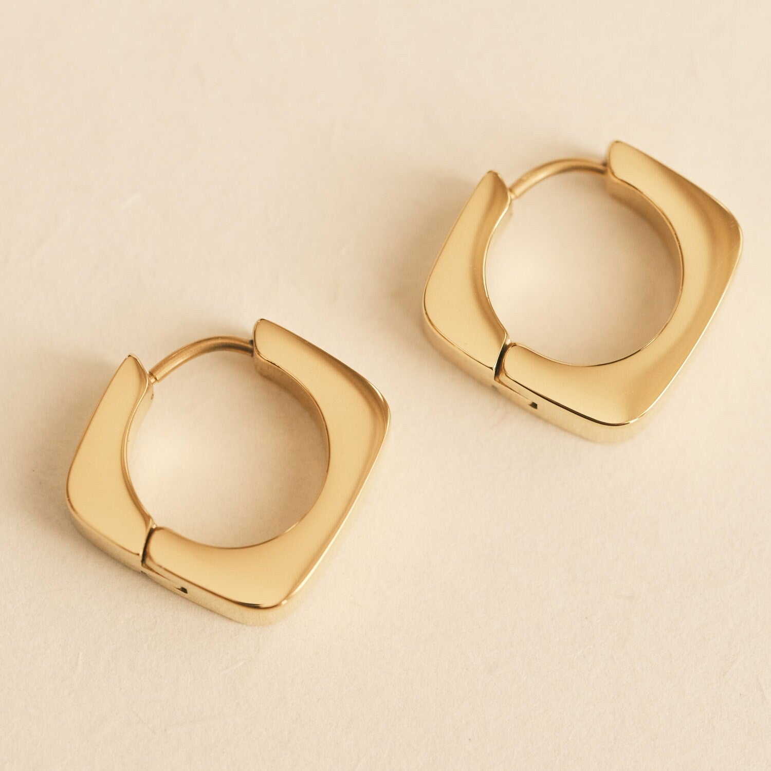 Gold Square Hoop Earring, Square Earring, Gold Earring, Chunky Earring, Gold Huggie Earring, Dainty Earring, Cute Earring, Waterproof Huggie