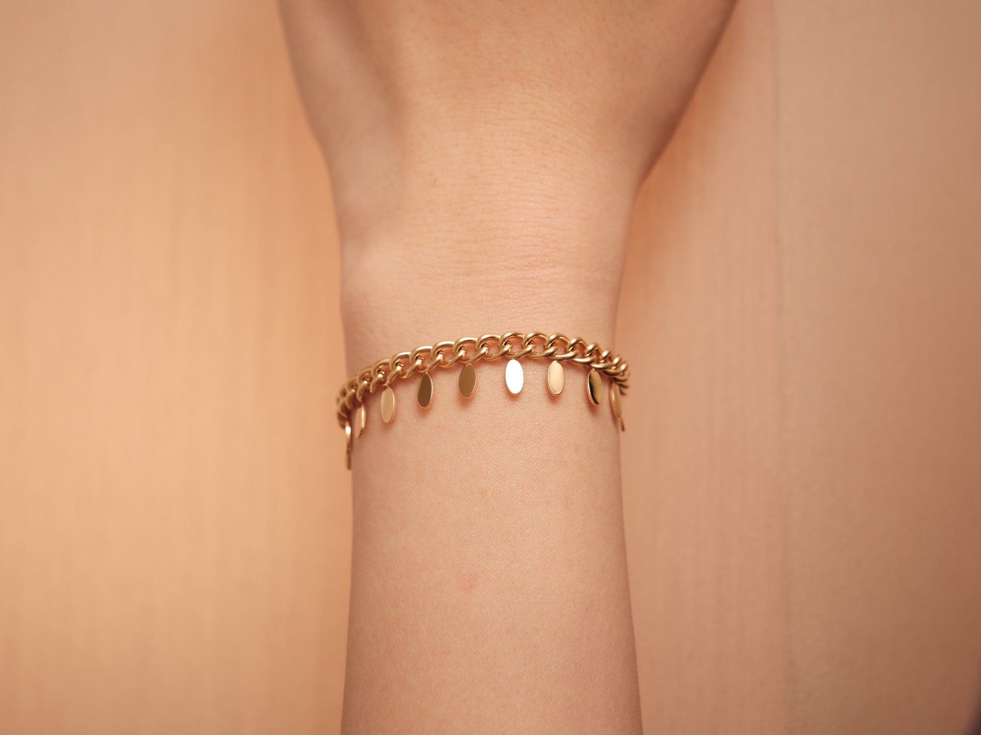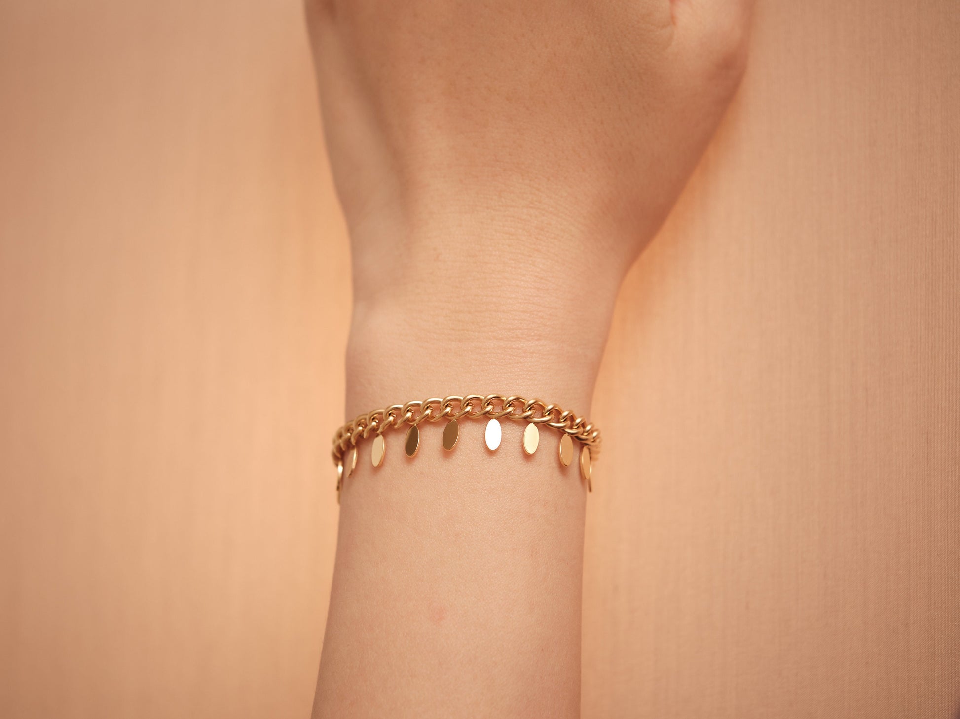 We're using this PVD coating technology on our jewelry. And this coating will make jewelry last way longer than normal gold plating jewelry. It won't tarnish in water or sweat, also won't turn green.