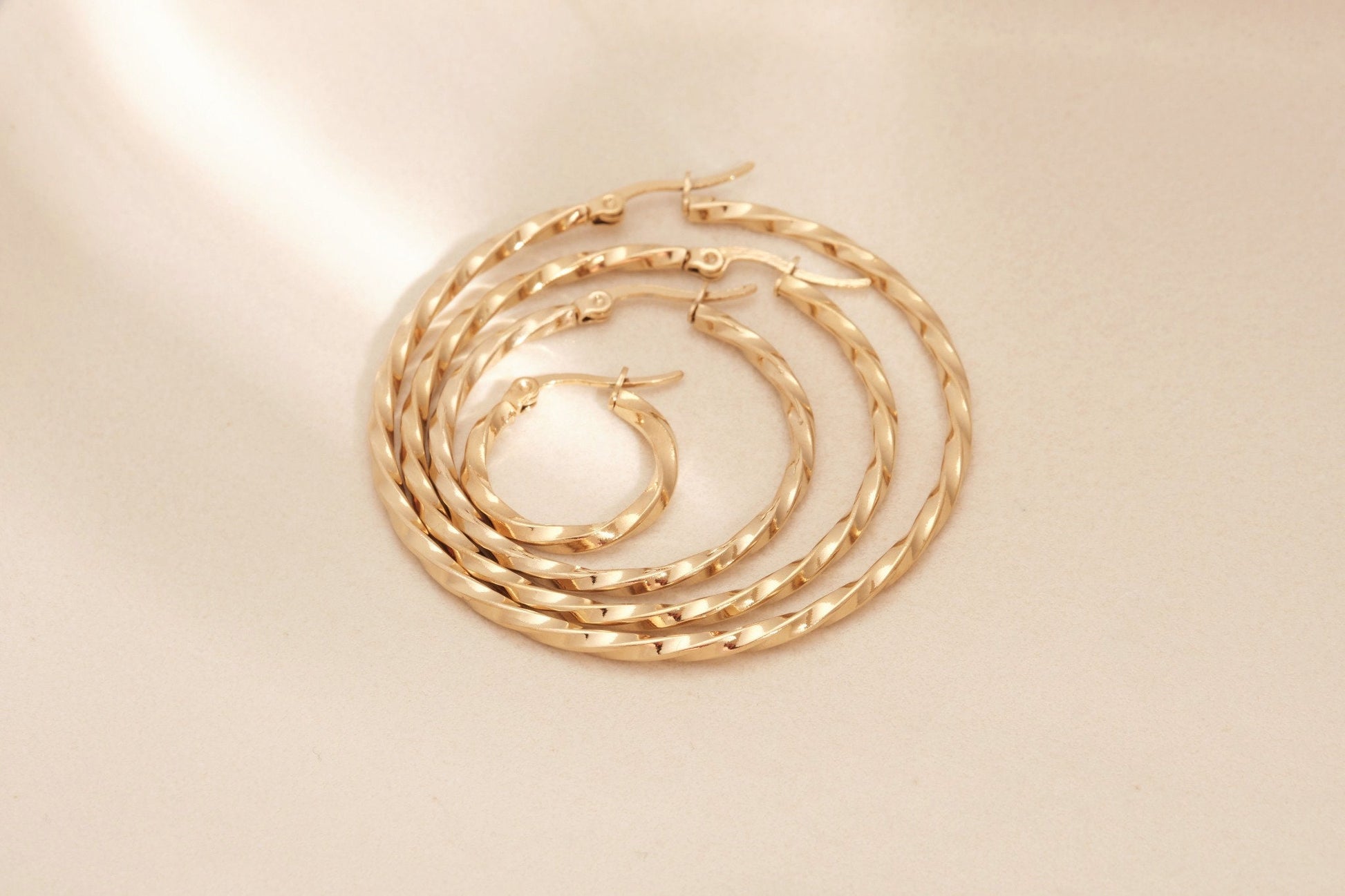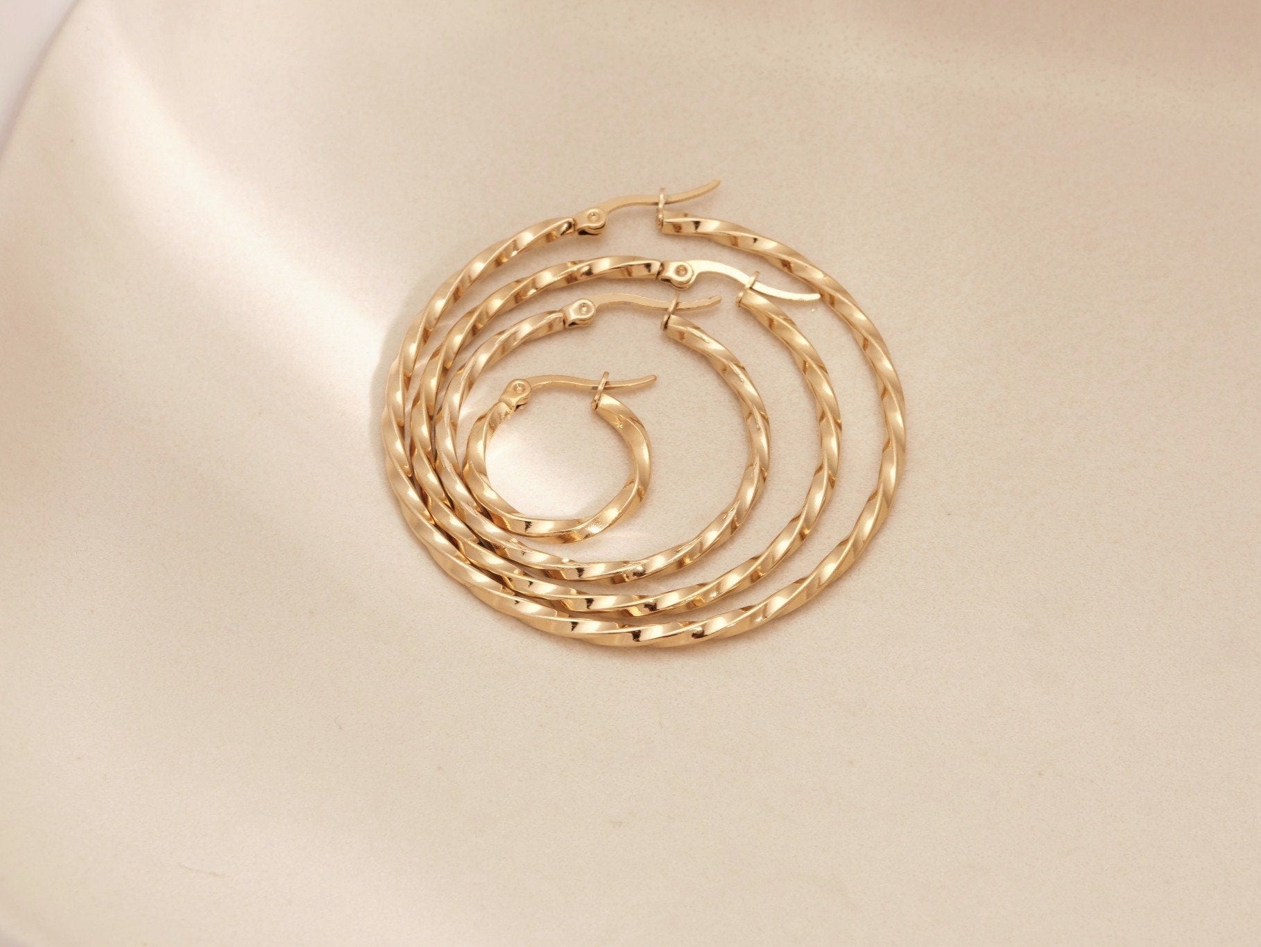 Gold Twisted Hoops, Gold Earrings, Gold Twisted Earrings, Gold Hoop Earrings, Small Hoops, Large Hoops, WATERPROOF, Gold Medium Hoops, Gift